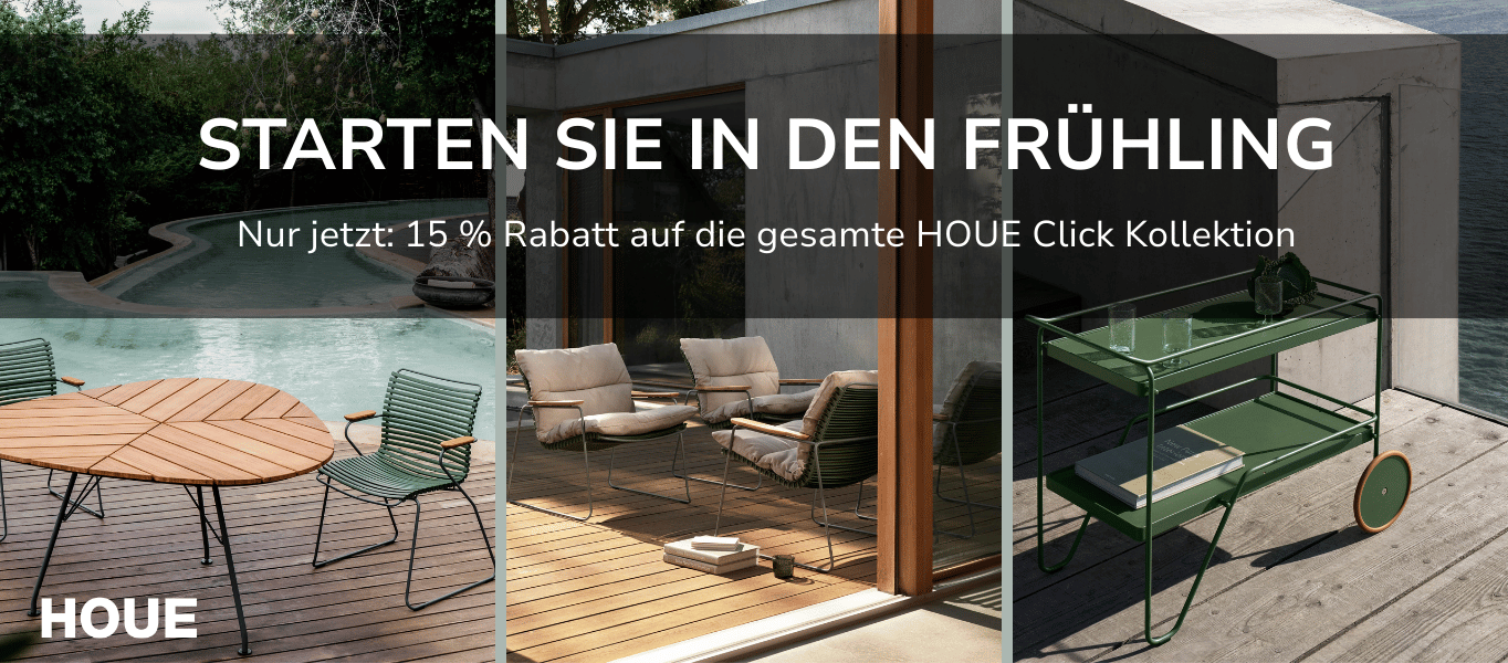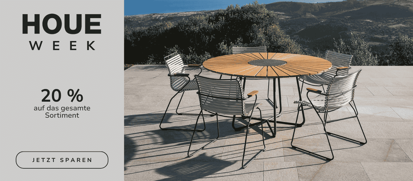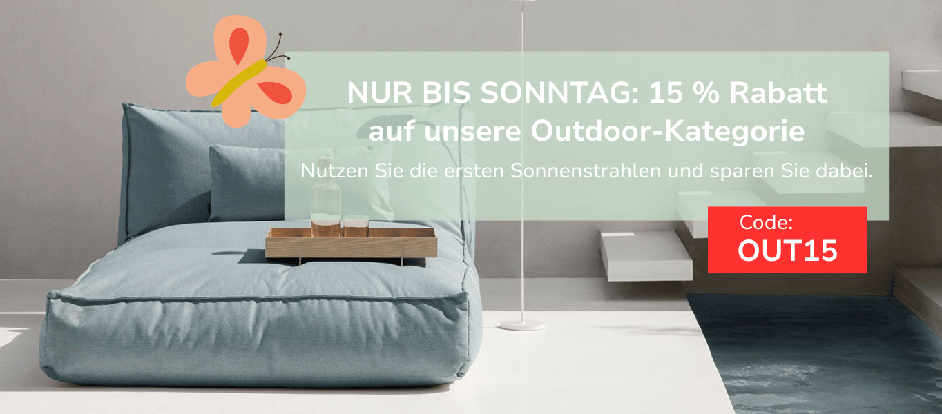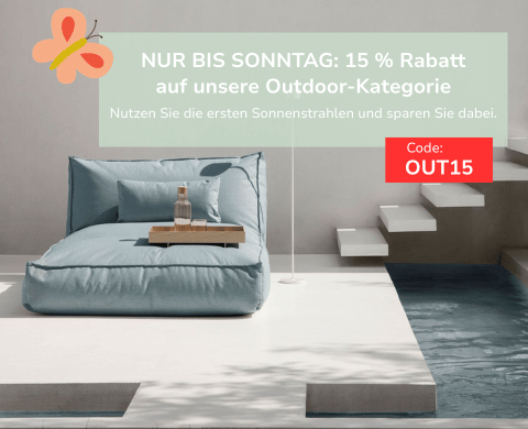Zu einem schicken Wohndesign gehört natürlich auch ein ansprechend gestalteter Außenbereich. Gerade wenn der Winter vorbei ist und sich die Sonne wieder öfter zeigt, bieten sich auch im Garten, auf der Terrasse oder dem Balkon viele Möglichkeiten, optisch Akzente zu setzen. In der warmen Jahreszeit sitzt man auch gerne noch am späten Abend zusammen im Freien, genießt gemeinsam ein Glas Wein oder grillt. Designmöbel für diese und viele weitere Anlässe stehen Ihnen bei uns in großer Auswahl zur Verfügung. Ob Sie sich für einen „ball chair“ entscheiden oder eine vollständige Gartenlounge wählen – mit uns machen Sie es sich im Garten, auf dem Balkon oder der Veranda richtig gemütlich. Und wenn Ihnen zum Grillen noch das ein oder andere fehlt – bei uns erhalten Sie vom schicken Lotus-Grill bis hin zur Holzkohle alles, was für das Kochen draußen benötigt wird.