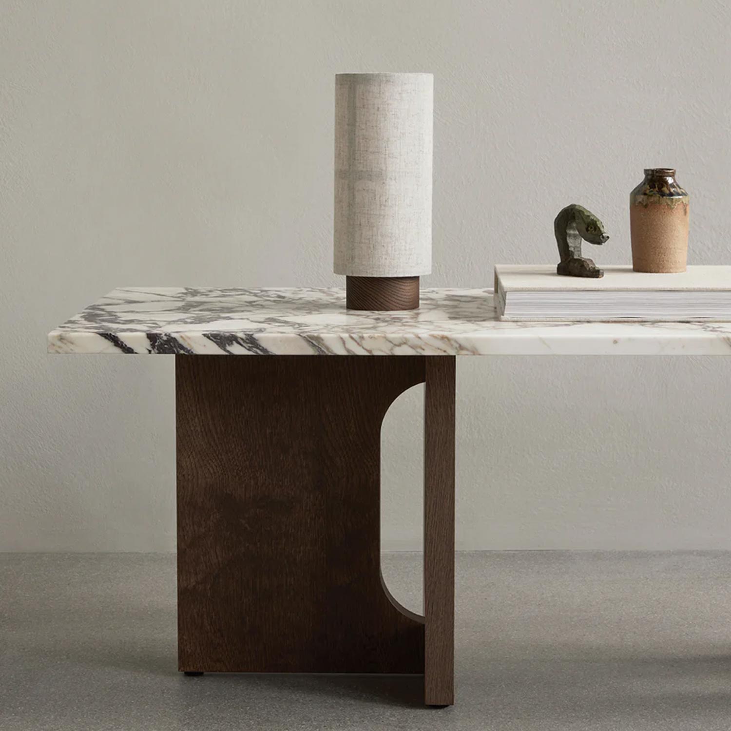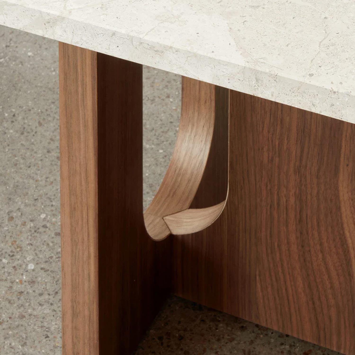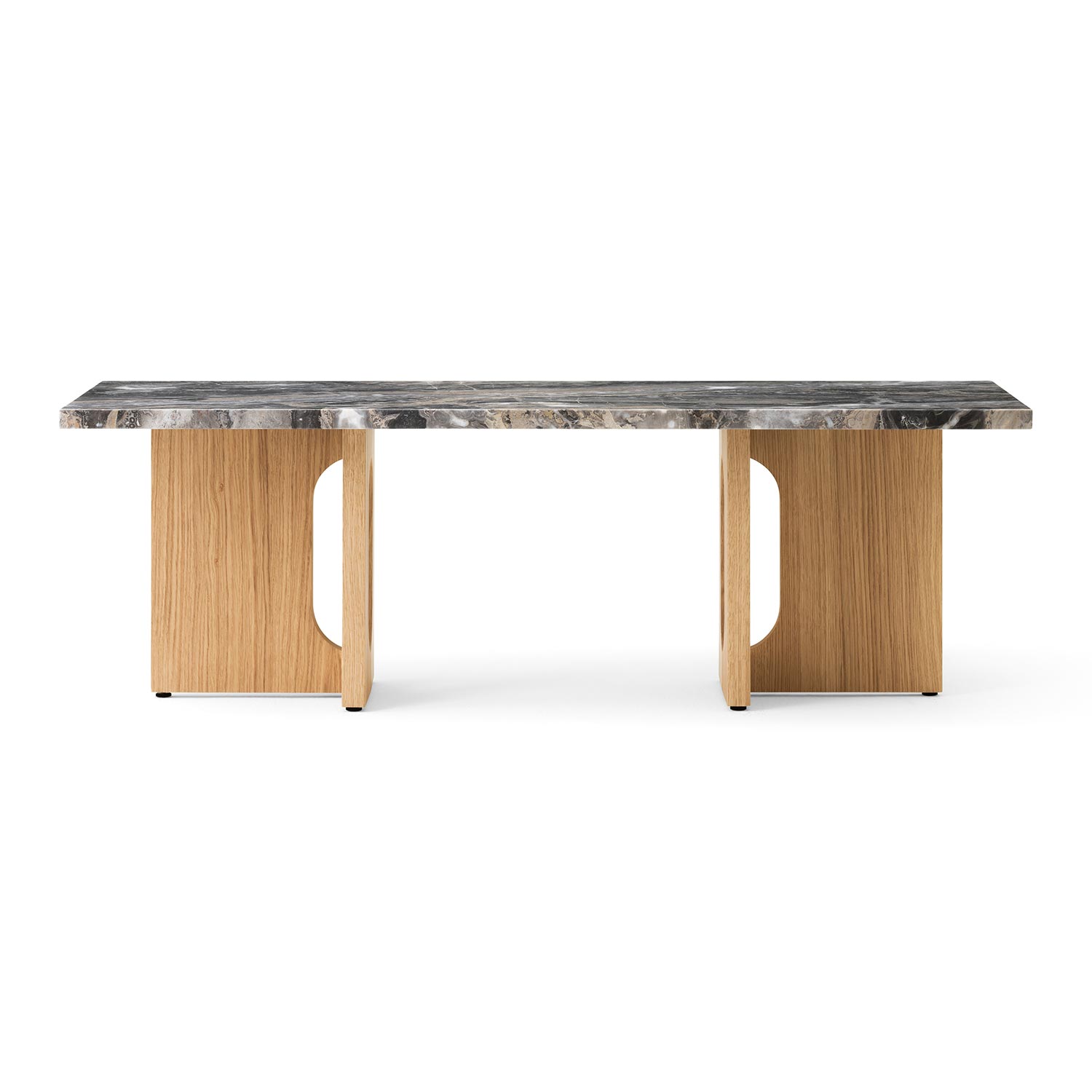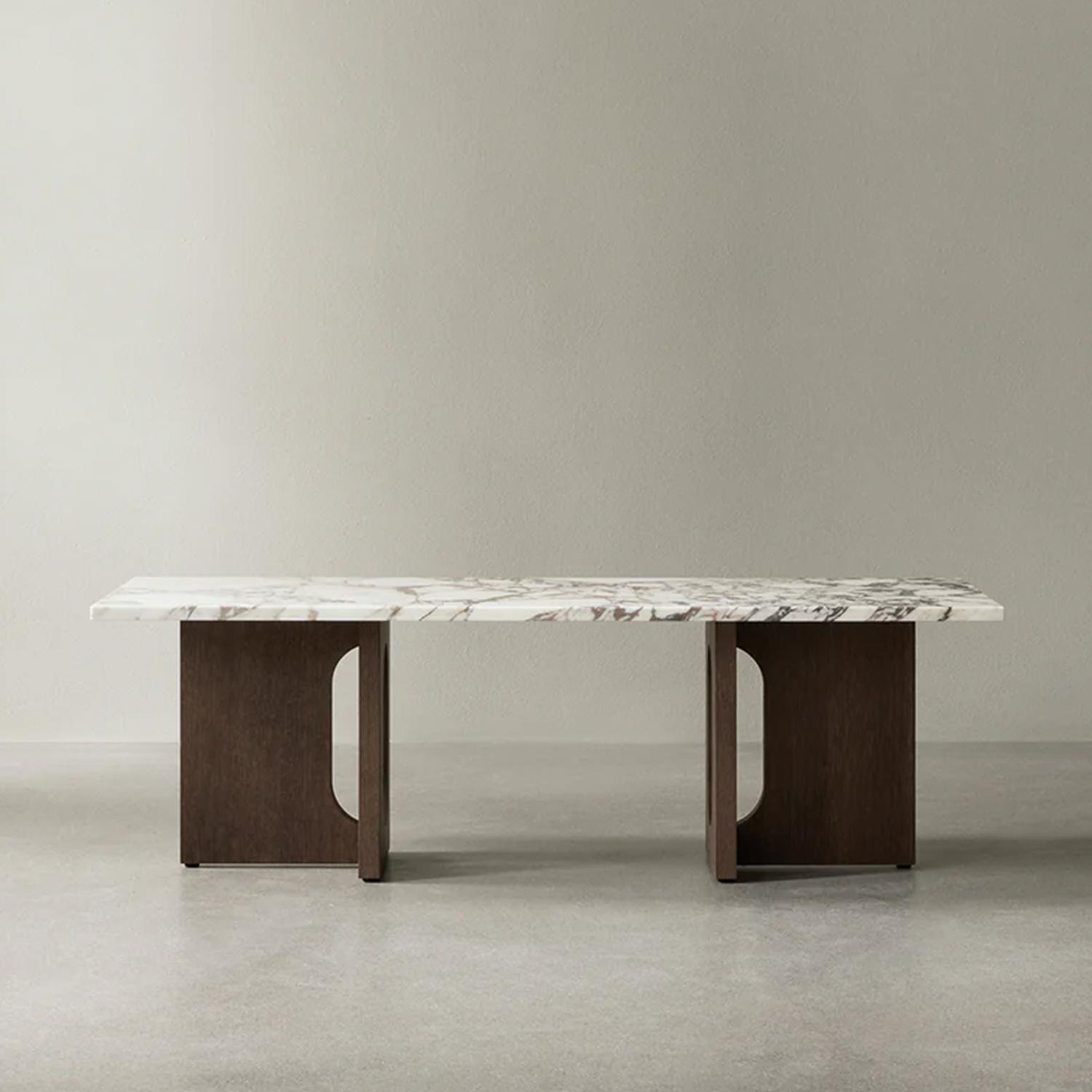 Der Holzfuß ist in den Ausführungen naturbelassen, dunkel gebeizte Eiche oder Nussbaum erhältlich. Bei den Tischplatten kann man zwischen Kunis Breccia, Calacatta Viola und grauem Galaxie-Marmor wählen. Die Formen und Funktionen des Audo - Androgyne Loungetisch Holz sind alltagstauglich und das vielseitige und modernistische Design macht es möglich ihn als Loungetisch, Beistelltisch oder als Bank für Bücher o. ä. zu nutzen.