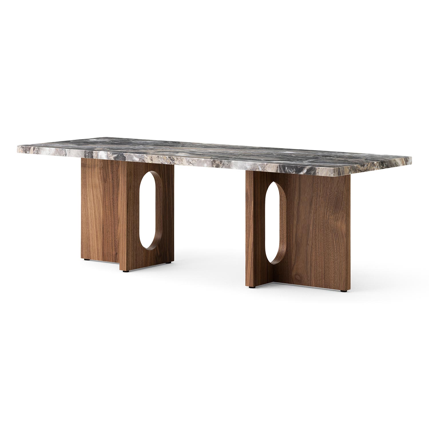 Der Holzfuß ist in den Ausführungen naturbelassen, dunkel gebeizte Eiche oder Nussbaum erhältlich. Bei den Tischplatten kann man zwischen Kunis Breccia, Calacatta Viola und grauem Galaxie-Marmor wählen. Die Formen und Funktionen des Audo - Androgyne Loungetisch Holz sind alltagstauglich und das vielseitige und modernistische Design macht es möglich ihn als Loungetisch, Beistelltisch oder als Bank für Bücher o. ä. zu nutzen.