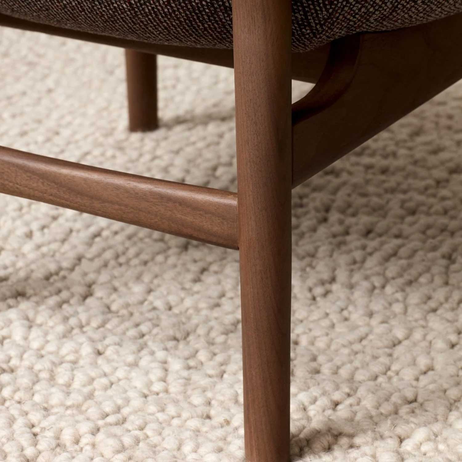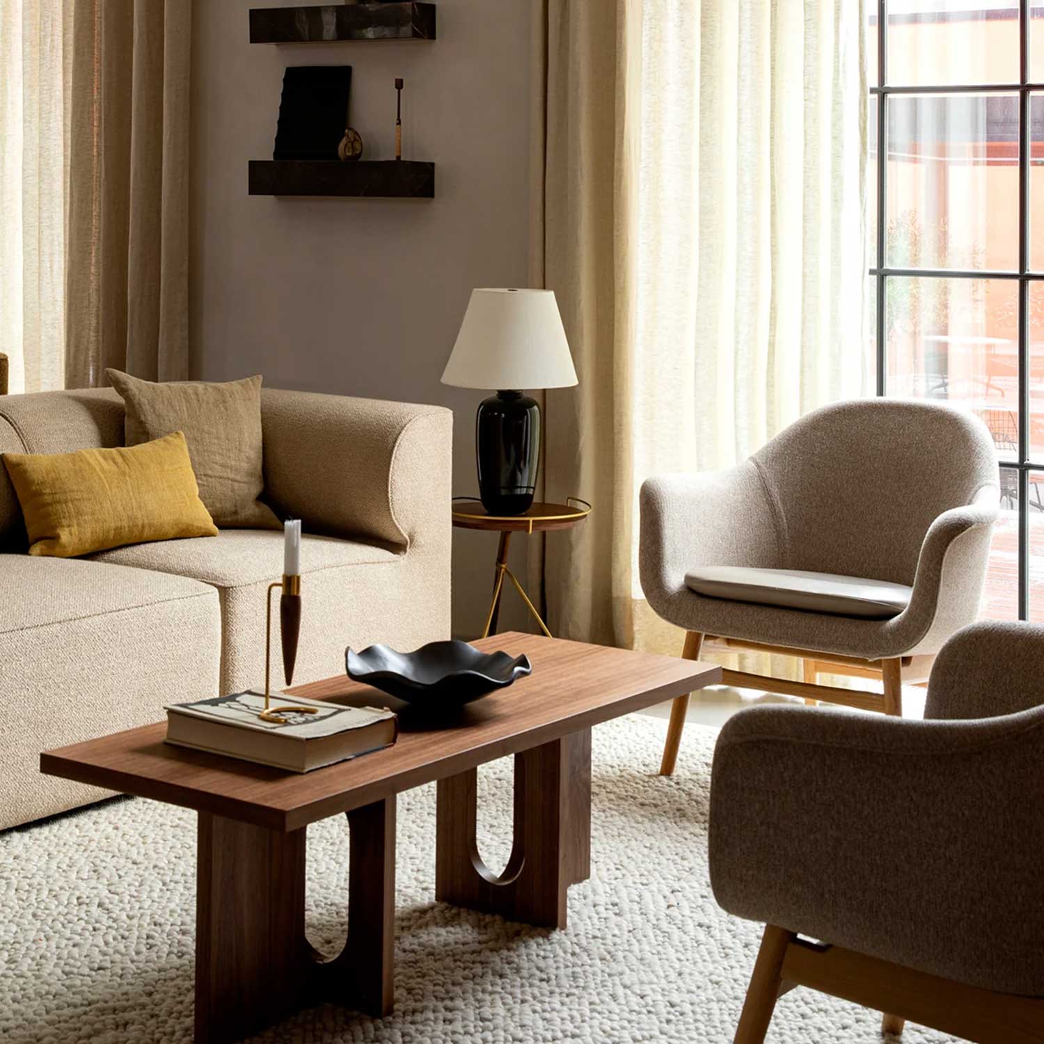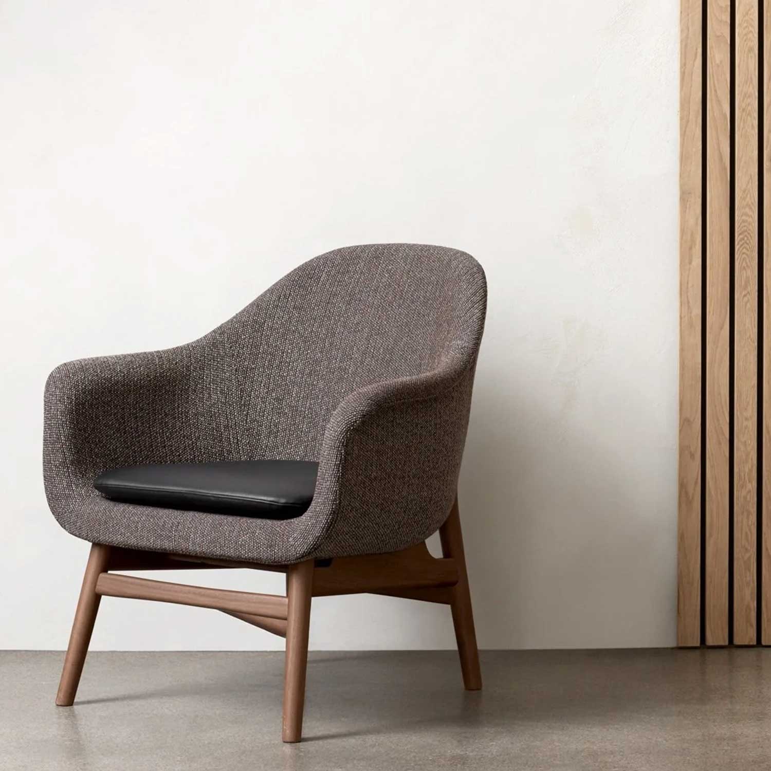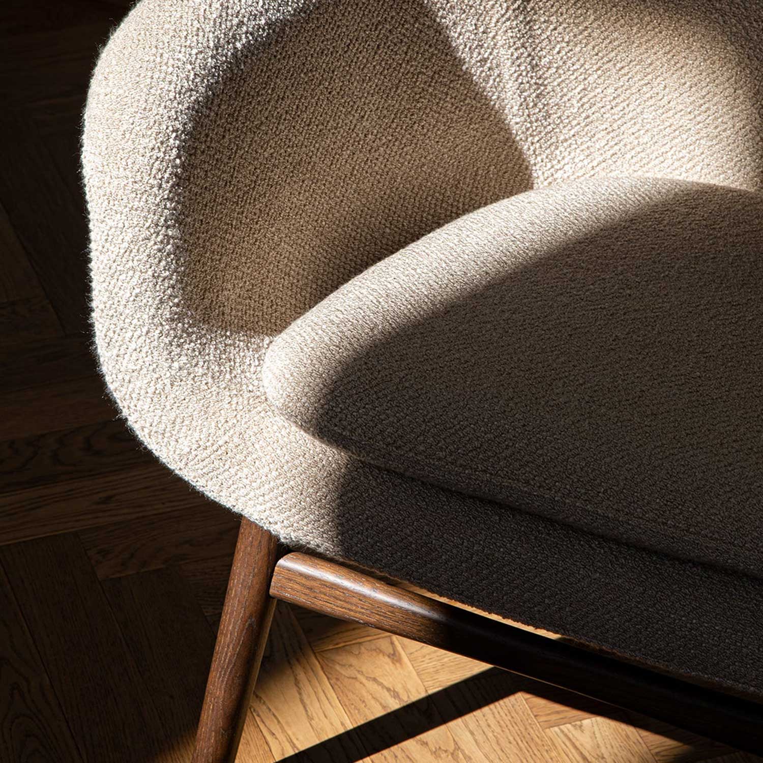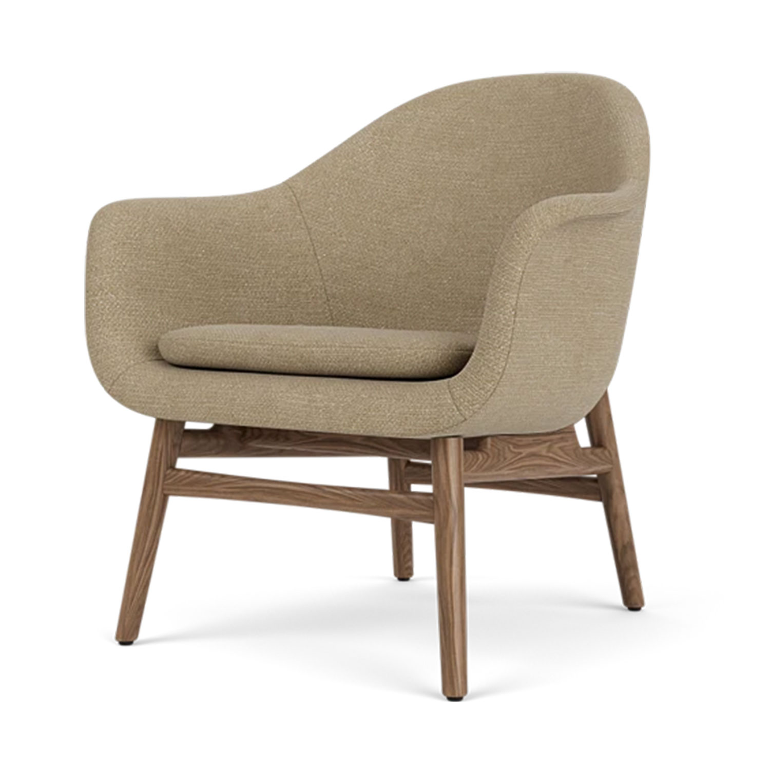 Der Audo - Harbour Loungesessel ist ein Meisterwerk des modernen Designs, entworfen von Norm Architects. Mit seiner skulpturalen Silhouette und den organischen Linien verkörpert dieser Sessel die Essenz des skandinavischen Mid-Century-Stils kombiniert mit brasilianischer Modernität. Er ist ein weiteres Mitglied der Harbour-Kollektion und behält die solide und dennoch leichte Konstruktion natürlich bei. Die gepolsterte Schale ruht auf einem Massivholrahmen und ist mit sanft geschwungen Seiten und einer abgewinkelten Rückenlehne versehen. Dieses Design vermittelt das Gefühl getragen und gestützt zu werden und lädt damit zu völliger Entspannung ein. Der Rahmen ist in verschiedenen Ausführungen erhältlich: naturbelassen, dunkel gebeizter oder schwarzer Eiche sowie Walnuss. Der niedrige Rahmen ist mit abgerundete Beinen versehen und zeichnet sich durch subtile Tischlerdetails aus.