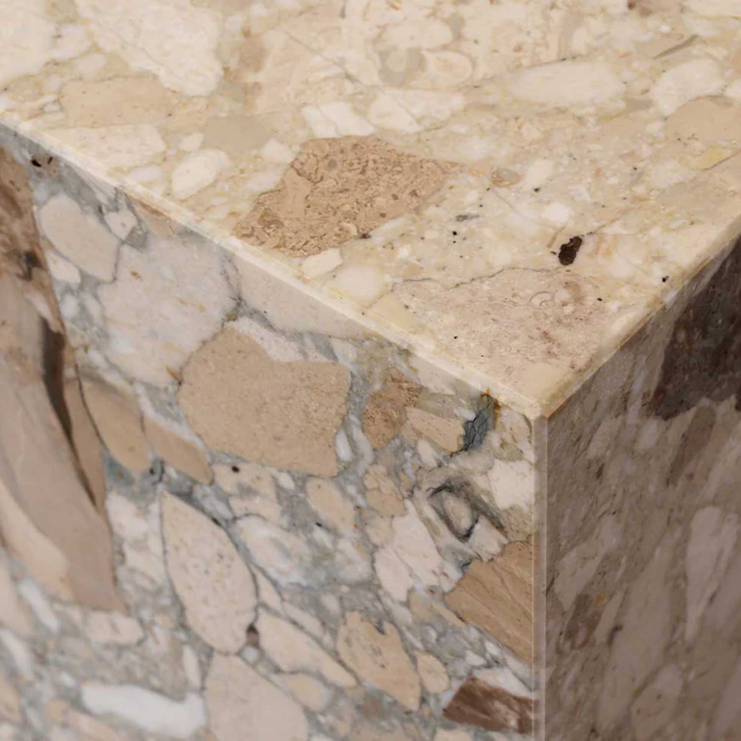 Gefertigt aus hochwertigem Marmor oder Naturstein, präsentiert sich der Plinth Grand in verschiedenen edlen Ausführungen wie Calacatta Viola, Carrara, Nero Marquina, Grey Kendzo und Kunis Breccia. Die präzise Verarbeitung mit auf Gehrung geschnittenen Kanten und die honed Oberfläche verleihen dem Objekt eine raffinierte Optik. Mit Maßen von 137 x 76 x 28 cm und einem Gewicht von ca. 120 kg bietet er eine großzügige Ablagefläche für diverse Anwendungen.