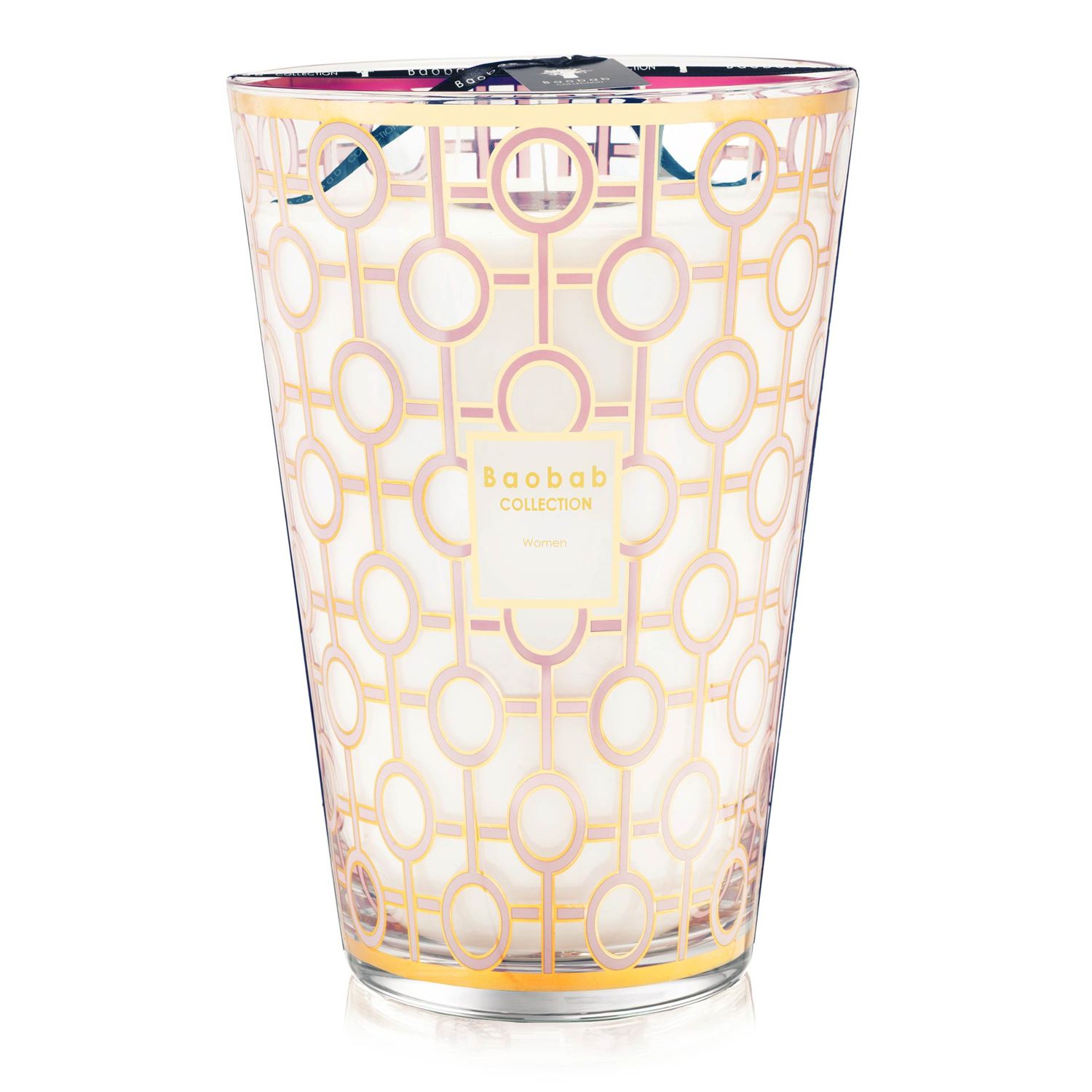 Ein dekoratives Glas mit einem schönen Siebdruck in Gold und Puderrosa ist die Basis der Baobab Collection Duftkerze Women. Der Duft aus Moschus und von pudriger Rose ist ultrafeminin.
