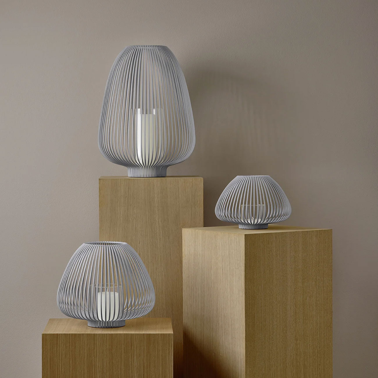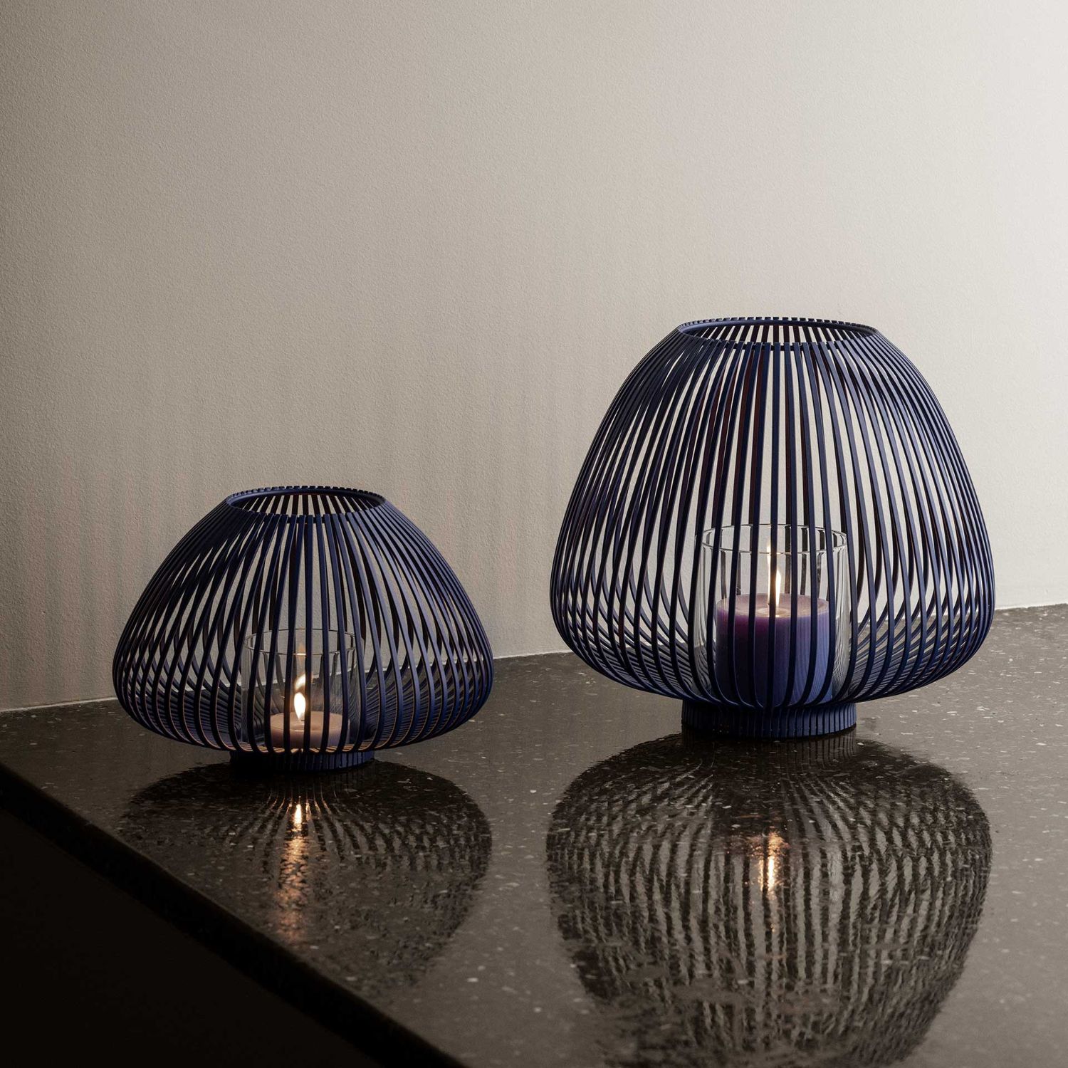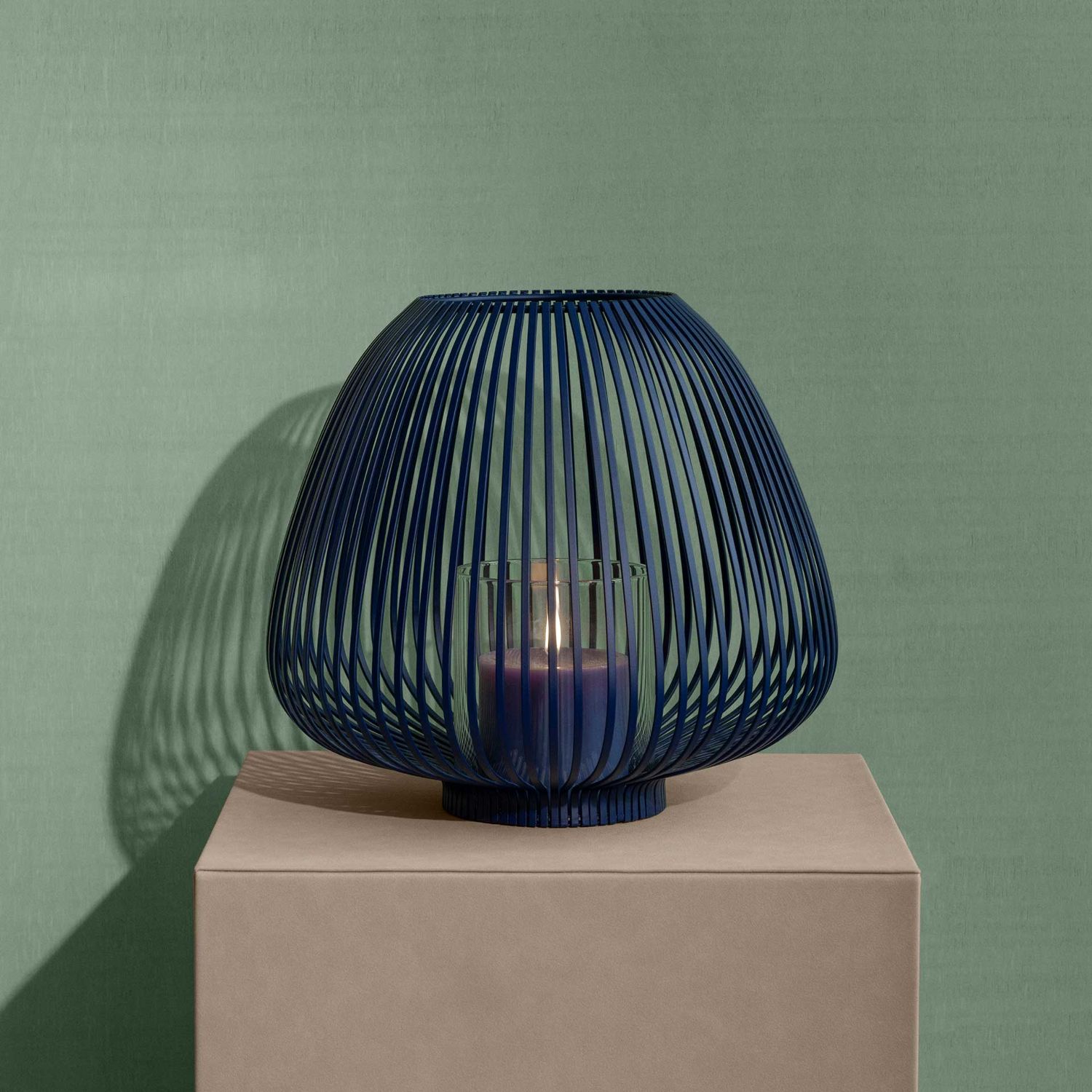 Die Designerin Nina Thöming hat mit der LYVA Laterne ein ausdrucksstarkes Objekt geschaffen, das Form und Funktion harmonisch verbindet. Das filigrane Gittermuster verleiht dem Lichtkörper Leichtigkeit, während das Glas Stabilität und Sicherheit gewährleistet – typisch für das durchdachte Design von blomus.