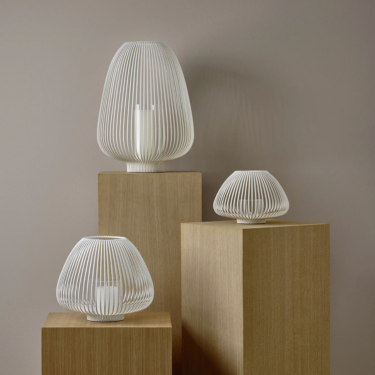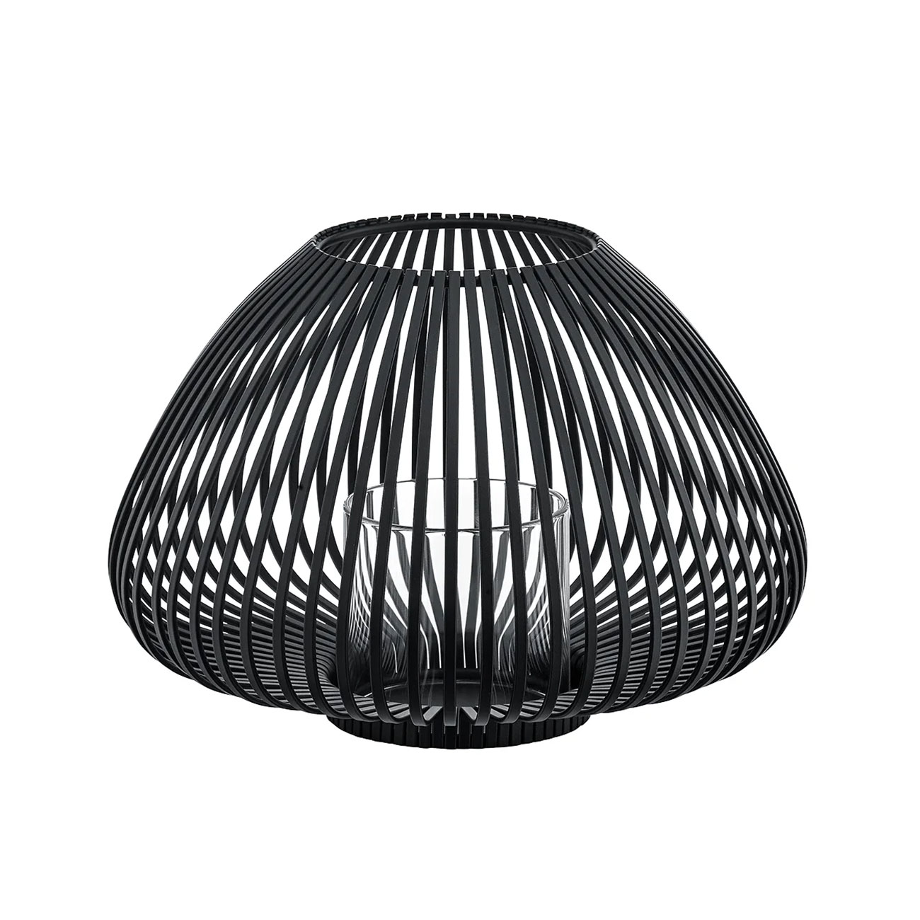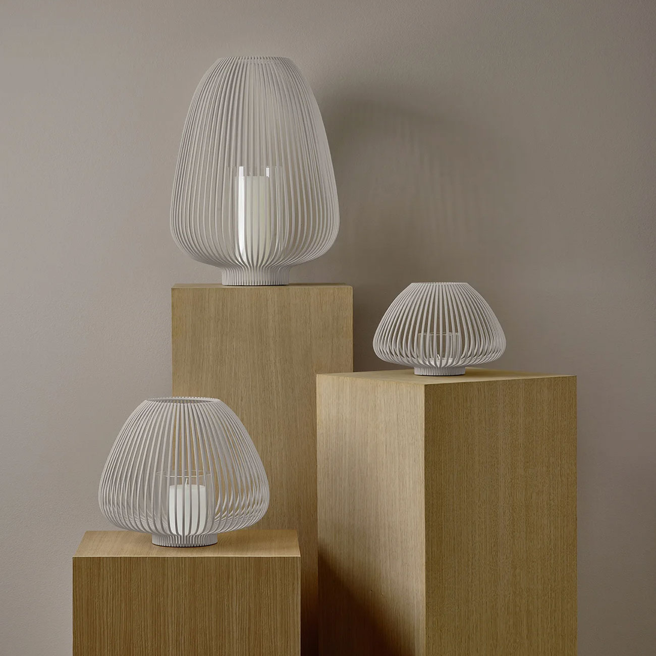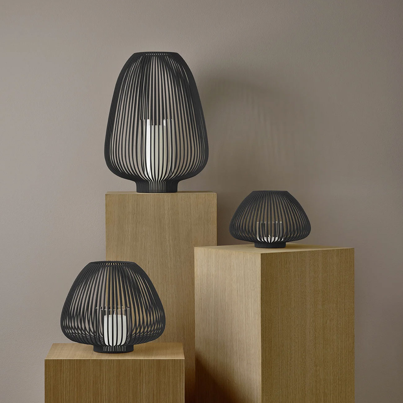 Die Designerin Nina Thöming hat mit der LYVA Laterne ein ausdrucksstarkes Objekt geschaffen, das Form und Funktion harmonisch verbindet. Das filigrane Gittermuster verleiht dem Lichtkörper Leichtigkeit, während das Glas Stabilität und Sicherheit gewährleistet – typisch für das durchdachte Design von blomus.