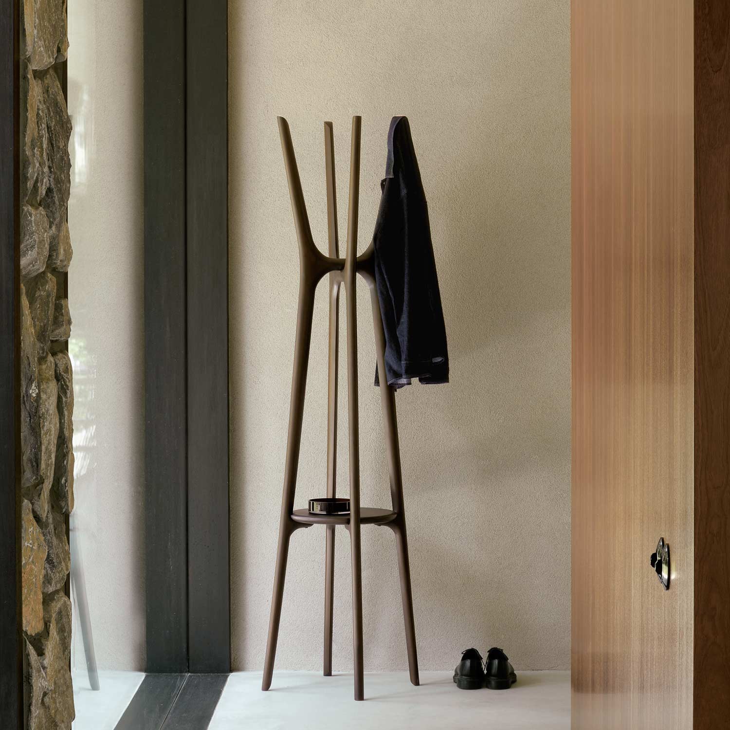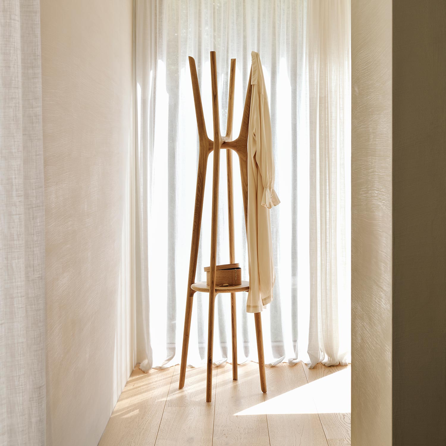 Der Ethnicraft PI Garderobenständer zeichnet sich dadurch aus, die Stärke, Kurven und Linien in seinem Design so beizubehalten, wie es die Natur für das Holz vorgesehen hat. So entstehen interessante Formen in dem von Hand gefertigten Design. Der PI Garderobenständer bietet Platz für Mäntel, Hüte und andere persönliche Gegenstände und ist ein stilvolles Accessoire für den Eingangsbereich.