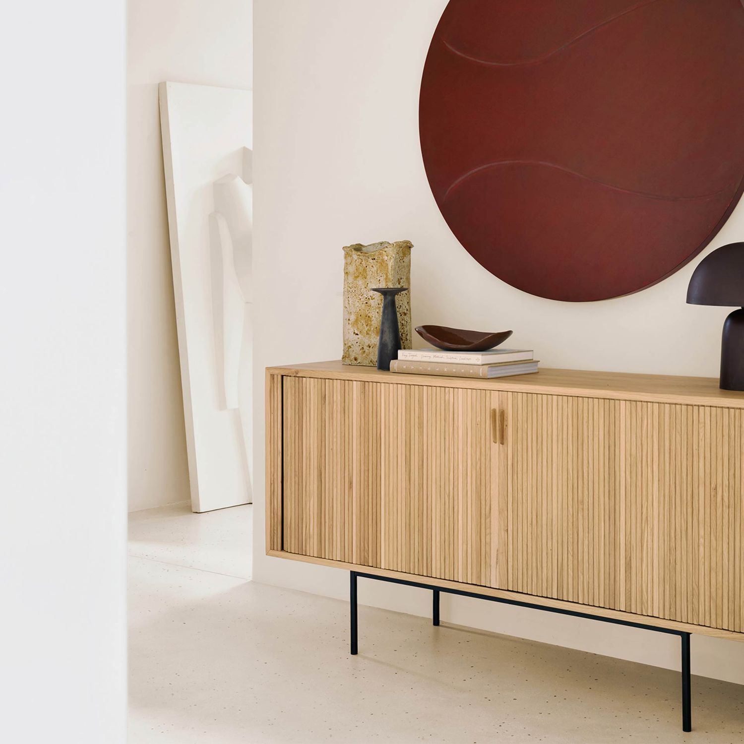 Jedes der Ethnicraft Design Möbel wie die Roller Max Anrichte wurden gefertigt um zeitlos, Trends zu überdauern, sodass man auch nach Jahren gefallen an ihnen findet. Eine hochwertige Aufbewahrungsmöglichkeit, wie sie in der Ethnicraft Design Anrichte steckt, benötigt seine passende Pflege. Hierzu empfehlen wir das zeitlose Design regelmäßig mit einem trocknen Tuch abzustauben. Sollten sich verschüttete Flecken auf dem Möbelstück verirrt haben, ist die Verwendung von natürlicher Seife ratsam. Hierbei darf in die Richtung der Maserung geputzt werden. Von Chemikalien ist allerdings abzusehen. Um Fleckenbildung auf der Holzanrichte zu vermeiden ist das Trocknen mit einem sauberen, weichen, Tuch empfohlen. Ein weiterer Tipp, der der Etnicraft Anrichte mit Schiebetüren zugutekommt ist, das Möbelstück fern von Heizkörpern oder Klimaanlagen aufzubewahren. Extreme Klimabedingungen schaden dem Holz und ragen langfristig zum Verschleiß bei.