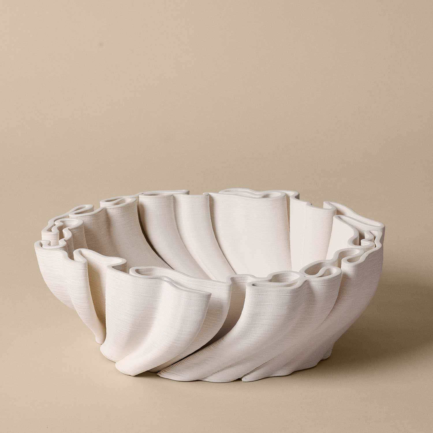 hochwertige Materialien: gefertigt aus 3D-gedruckter Keramik, überzeugt die Schale durch ihre robuste Beschaffenheit und die Kombination aus unglasierter Außenseite und glasierter Innenseite.