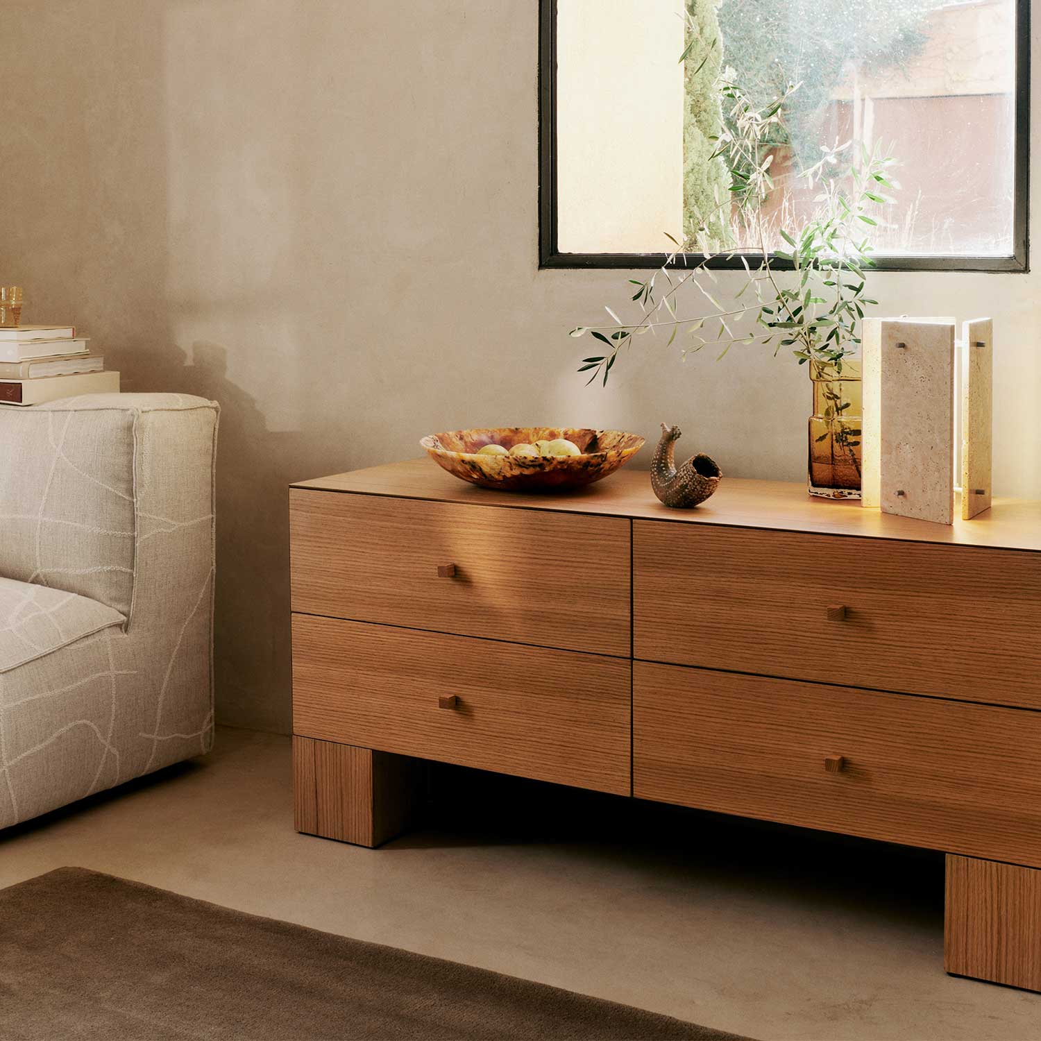 - präzise Verarbeitung: Gehrungsverbindungen verleihen der Kommode eine nahezu nahtlose Erscheinung.