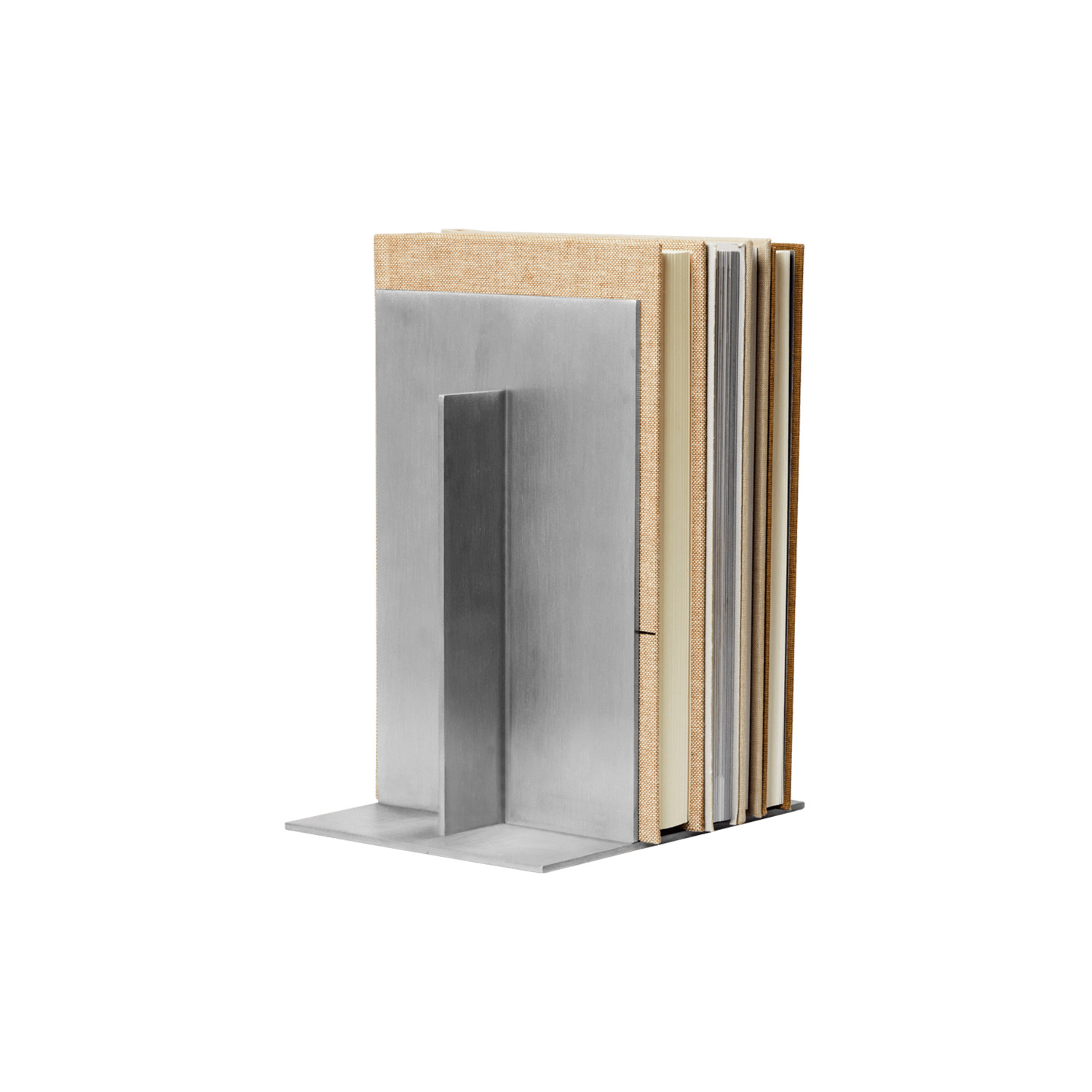 Die Ferm Living - Lager Buchstützen im 2er-Set bringen mit ihrer klaren, geometrischen Form und dem gebürsteten Aluminium ein industrielles Flair in Ihre Einrichtung. Ob im Regal, auf dem Sideboard oder Schreibtisch – diese Buchstützen sorgen für festen Halt und setzen gleichzeitig skulpturale Akzente.