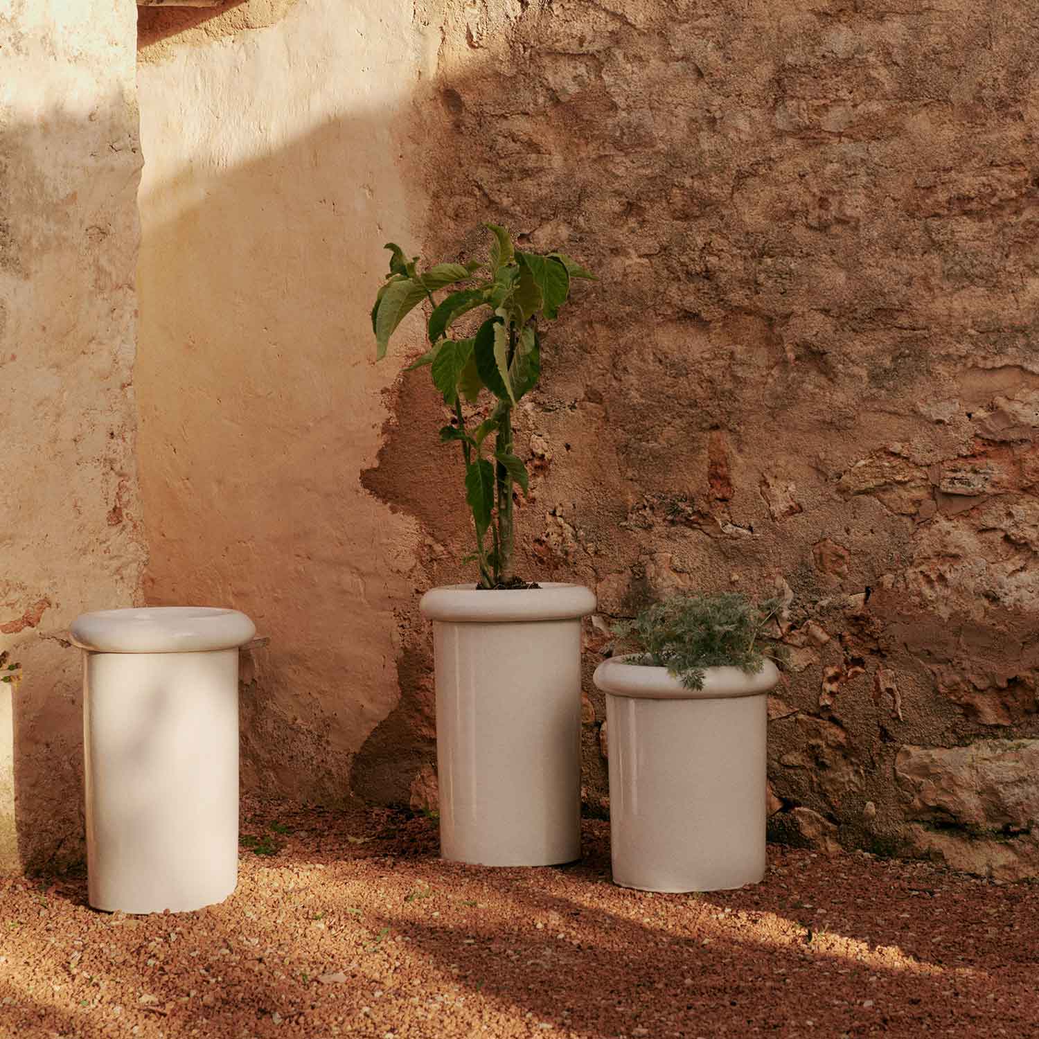 Erhältlich in zwei Größen und drei Farben – Moss Green, Terracotta und White – lässt sich der Ferm Living - Rollo Topf vielseitig kombinieren und fügt sich harmonisch in verschiedene Wohn- und Terrassenkonzepte ein. Ob auf dem Boden, auf einem Podest oder auf der Fensterbank – der Rollo ist ein zeitloses Statement.