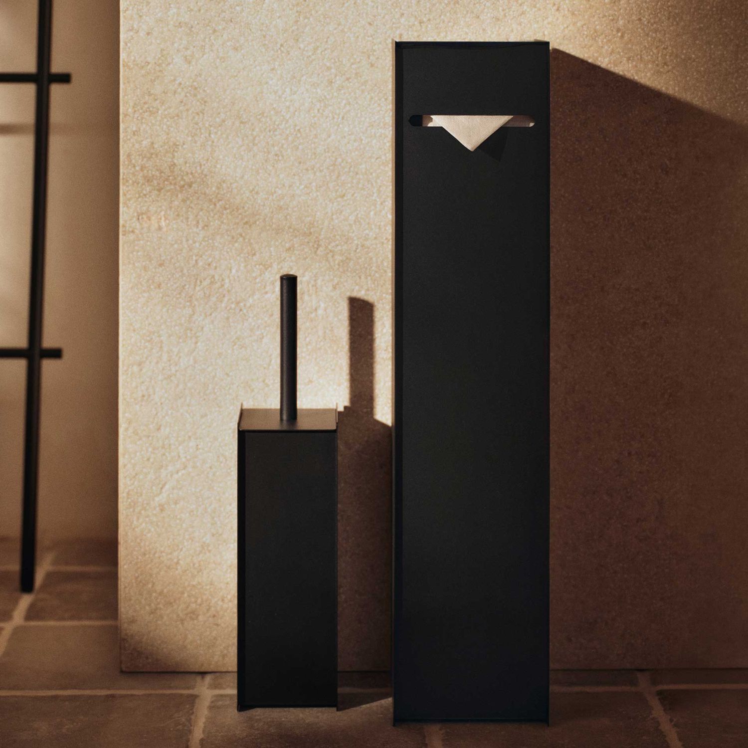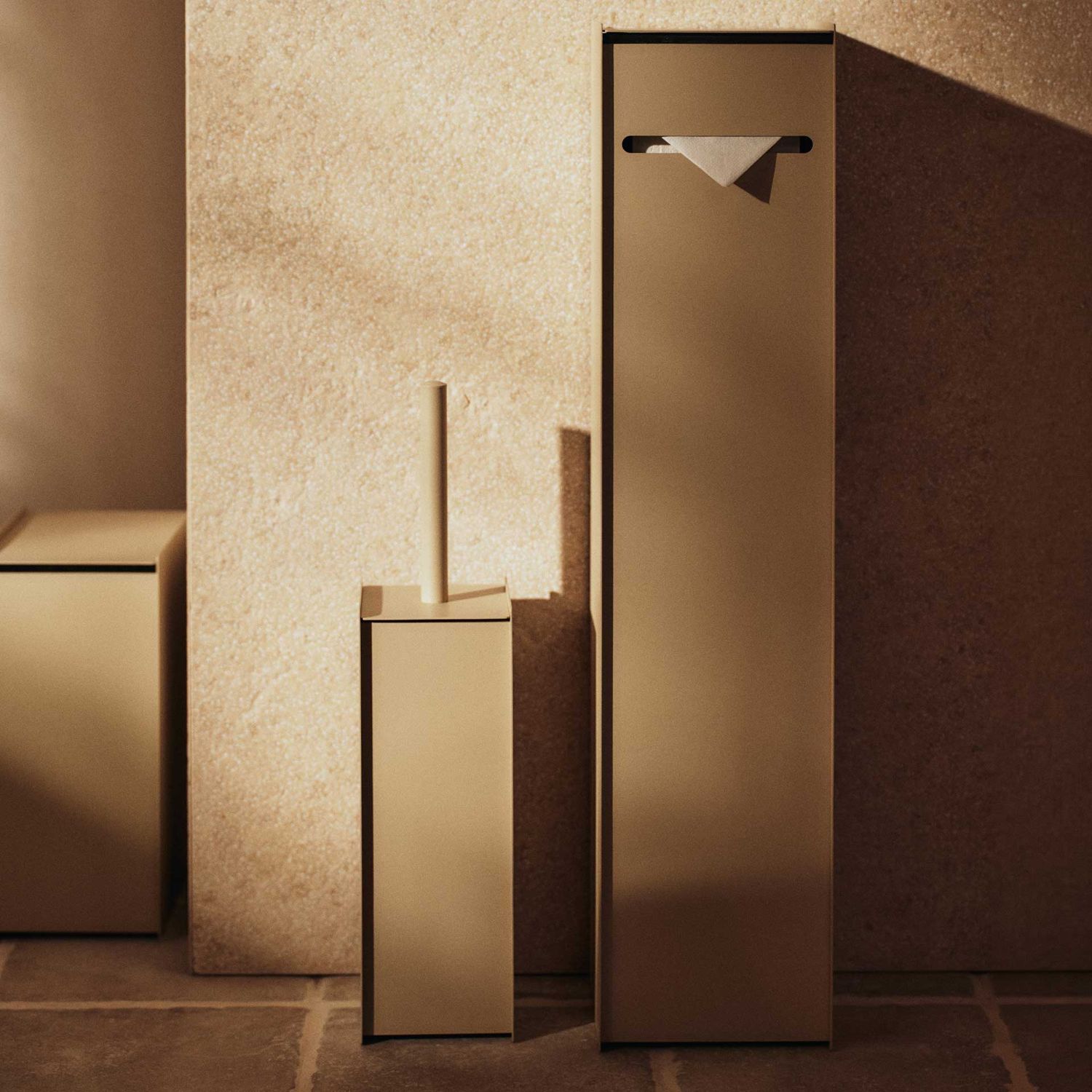 Der Ferm Living - Sama Toilettenpapierspender kombiniert funktionale Aufbewahrung mit einer klaren, architektonischen Form. Als freistehender Organizer bietet der Ferm Living - Sama Toilettenpapierspender Platz für mehrere Rollen und bringt Struktur in den WC-Bereich.