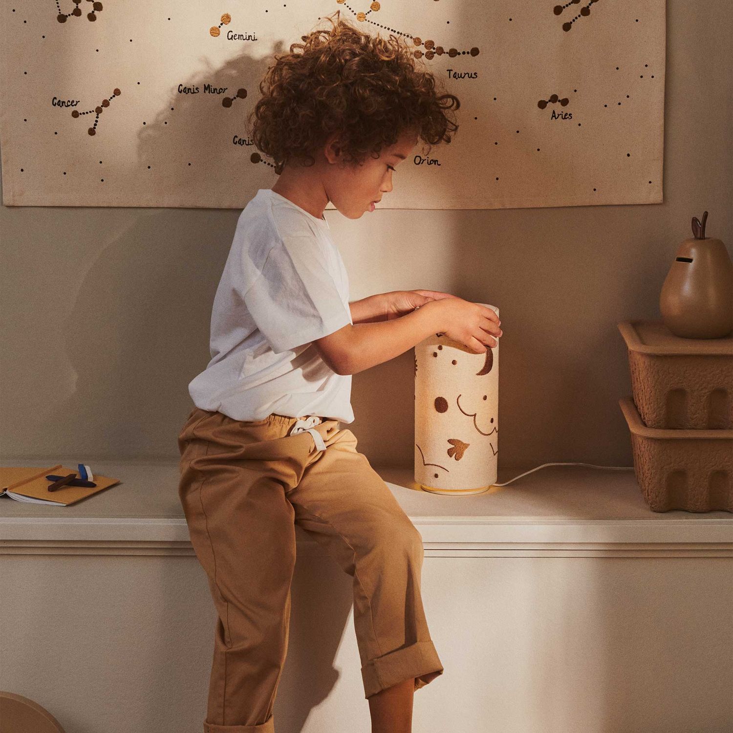 Die Ferm Living - Skye Tischlampe ist eine stimmungsvolle Kinderleuchte für Kinderzimmer oder Spielbereiche. Mit ihrem Leinenschirm und dem warmen Licht schafft die Ferm Living - Skye Tischlampe eine angenehme Atmosphäre im Alltag.