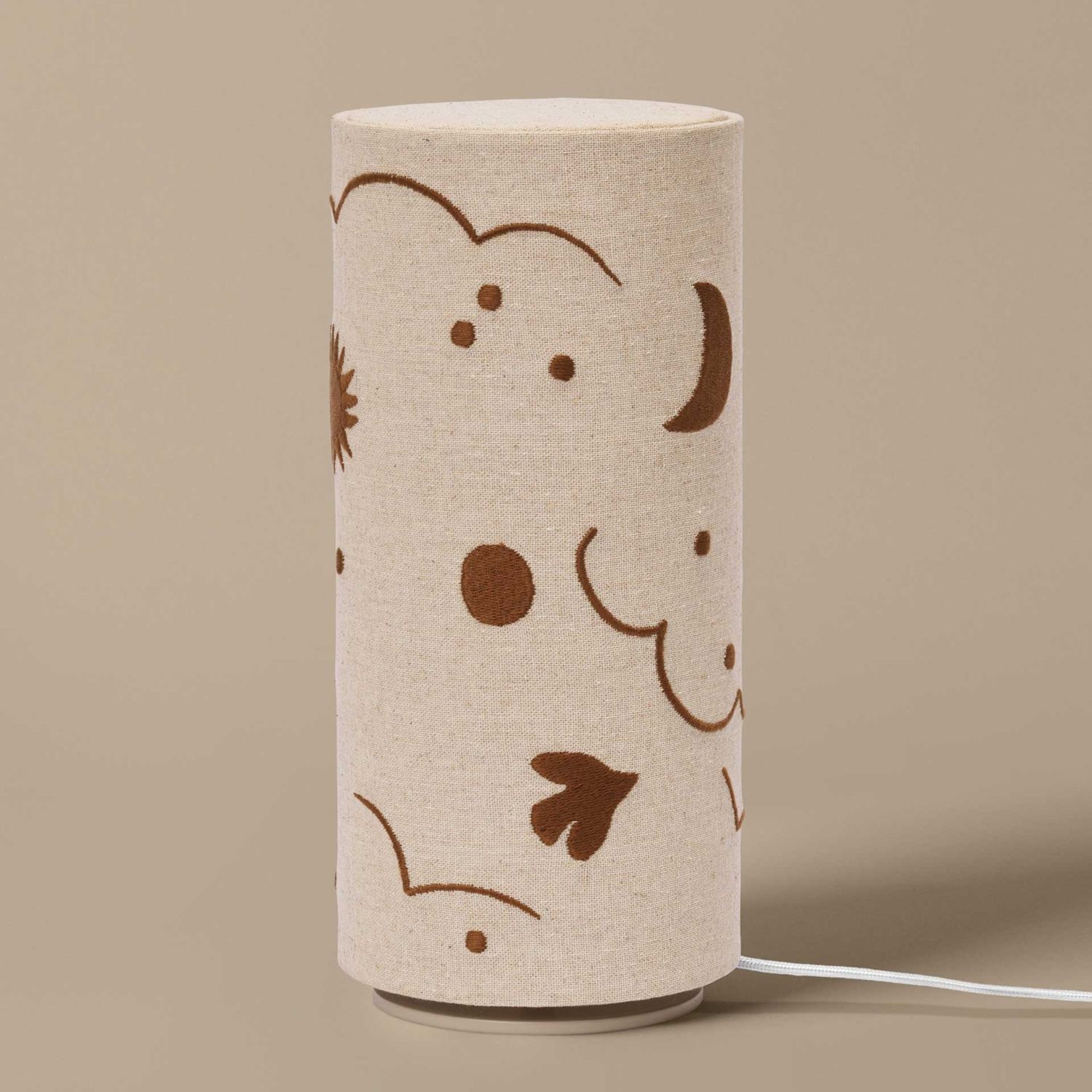 Der Leinenschirm der Ferm Living - Skye Tischlampe ist mit einem vom Himmel inspirierten Stickereimuster versehen. Dieses Detail verleiht der Ferm Living - Skye Tischlampe eine besondere Ausstrahlung und bringt eine sanfte visuelle Struktur in den Raum.