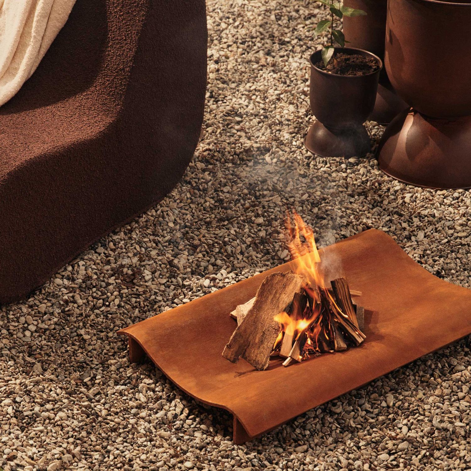 Ferm Living - Solene Feuerschale mit niedriger Flamme und skulpturaler Form