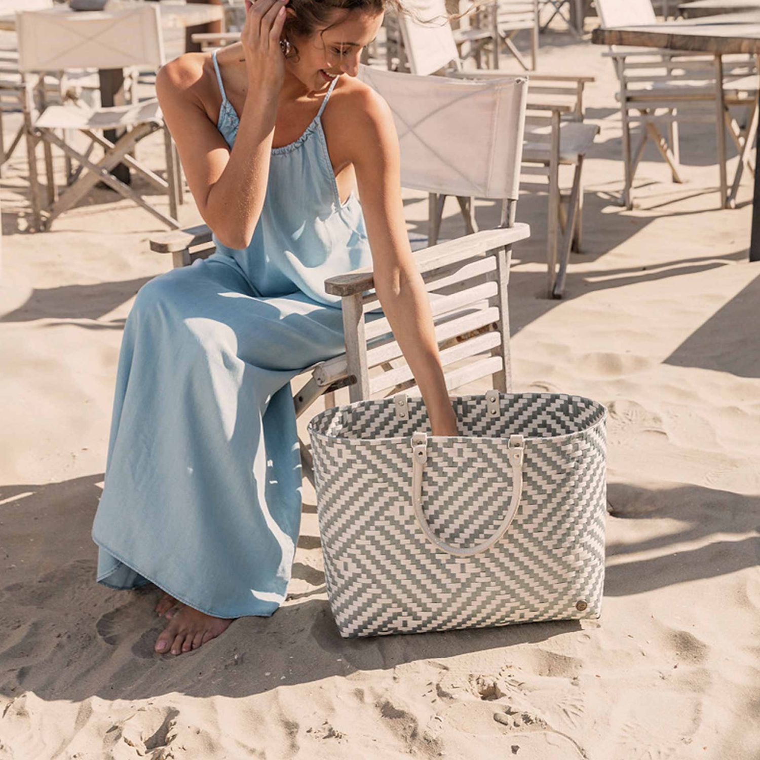 Der Handed By - Claire Shopper ist ein eleganter, etwas größerer Einkaufsshopper, der durch sein vergrößertes Flechtmuster eine moderne, strukturierte Optik erhält. Die Tasche bietet genügend Platz für alle täglichen Begleiter – ob für den Einkauf, den Strandtag oder einen Stadtbummel. Der Shopper verbindet feminine Linienführung mit praktischer Funktionalität.