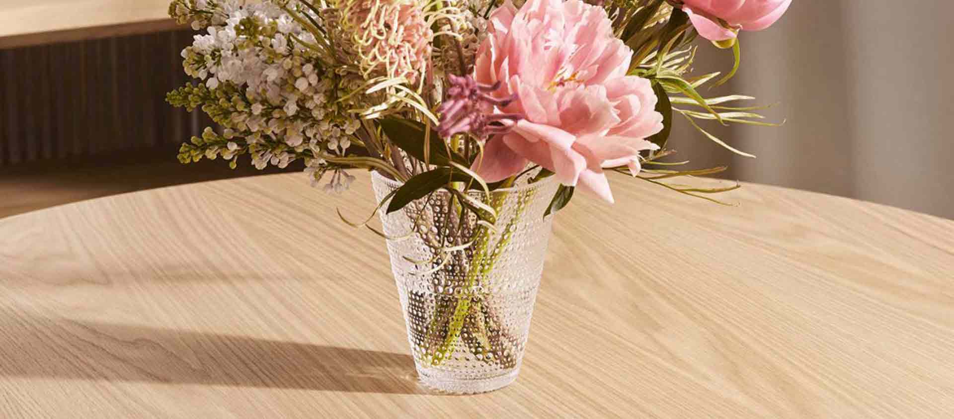 Dank ihres zeitlosen Designs wirken Iittala Vasen selbst bei schlichtester Dekoration edel und fĂĽgen sich mĂĽhelos in jeden Wohnstil ein. So wird aus einem einzelnen Objekt ein frischer Akzent fĂĽr den ganzen Raum.