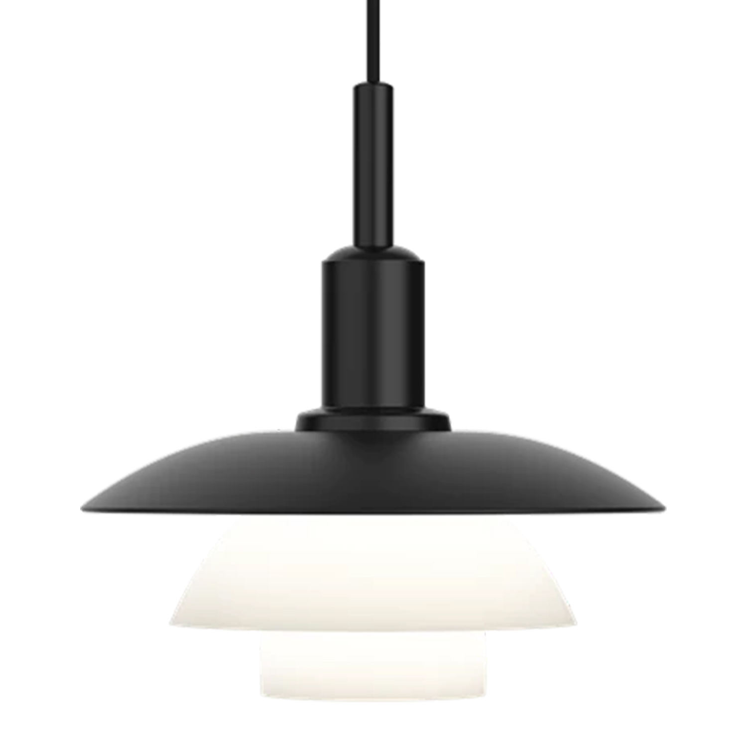 Die PH 3/3 Pendelleuchte besteht aus hochwertigem Opalglas und Metall. Die drei Schirme sind im Verhältnis 3:2:1 proportioniert, wobei der obere Schirm einen Durchmesser von ca. 30 cm hat. Diese Konstruktion ermöglicht eine weiche, diffuse Lichtverteilung ohne Blendung. Die Leuchte ist in verschiedenen Ausführungen erhältlich, darunter Opalglas, mattschwarz lackiertes Metall und Sondereditionen wie die Pale Rose mit rosafarbenem Glas und Messingdetails. Die „ganzen“ Größen wirken runder als die etwas schlankeren Hybridgrößen. Bei der Ausführung mit schwarz lackiertem Metall mit Softtouch ist die Innenseite in weiß gehalten. Die Opalglas-Schirme sind lichtdurchlässig und mundgeblasen und erzeugen einen warmen Lichtschein um die Pendelleuchte herum. Die Metallschirme mit den weiß lackierten Innenseiten hingegen strahlen ein zartes, primär nach unten gerichtetes Licht ab. Die Kombination mit Metalloberschirm und mittlerem und unteren Schirm aus Opalglas strahlt das Licht auf beide Weisen ab.