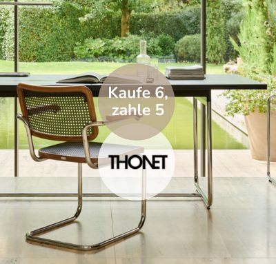 Vom 01.10.2025 bis zum 31.03.2026 erhalten Sie beim Kauf von 6 Bauhaus Freischwingern (S32/S64,S33, S43/S43F) einen Stuhl geschenkt.