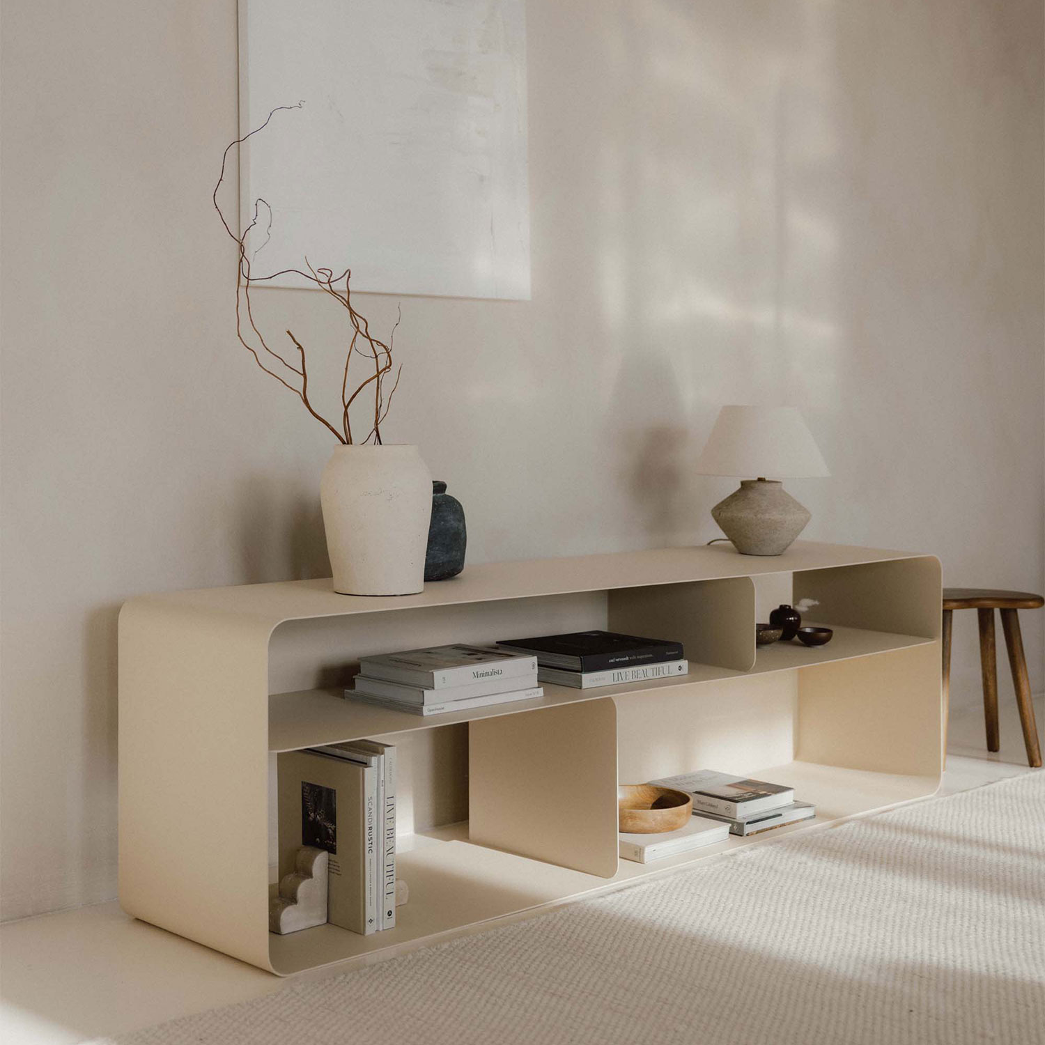 Das Metallbude Tavir Lowboard schafft mit seinem offenen Design und der klaren Struktur eine luftige Wirkung im Raum. Ob im Wohnzimmer unter dem Fernseher oder als modernes Sideboard im Eingangsbereich – es überzeugt mit vielseitigen Einsatzmöglichkeiten.