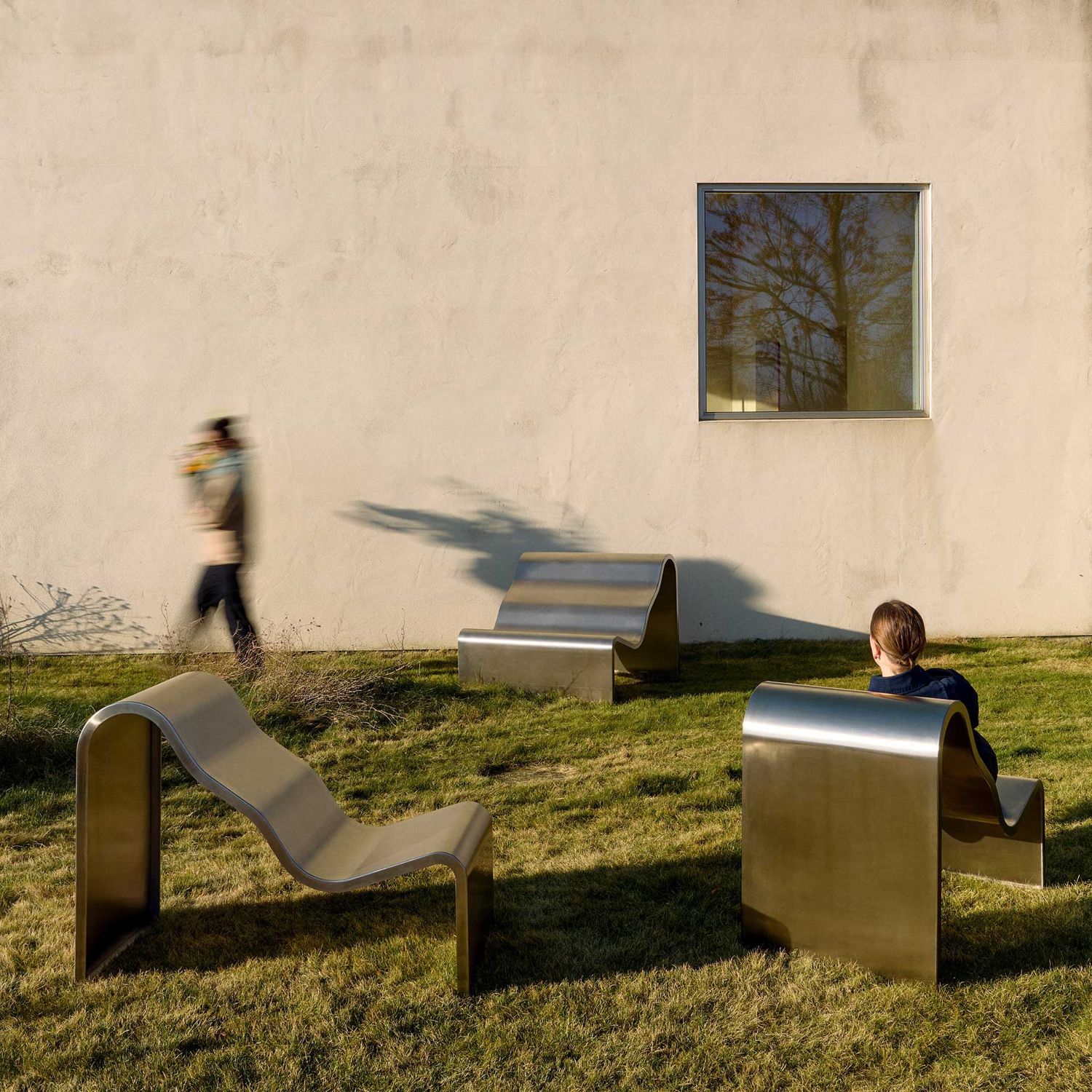Die Oberfläche der Muuto Dream View Bank reflektiert ihre Umgebung auf subtile Weise. Dadurch entsteht ein spannendes Zusammenspiel von Licht, Umgebung und Objekt, das die skulpturale Wirkung zusätzlich unterstreicht.