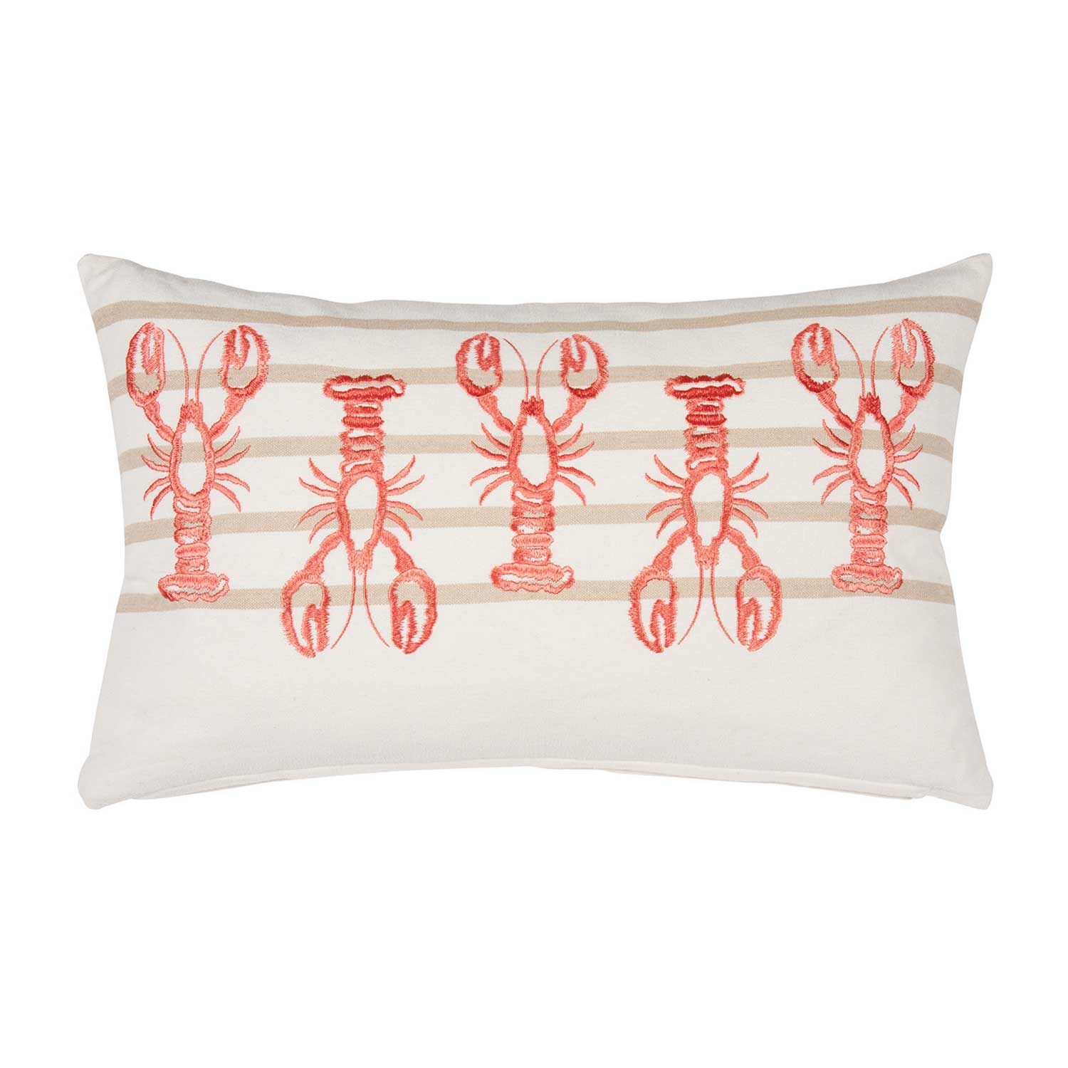 Die pad - Lobby Kissenhülle ist ein elegantes Accessoire für Ihr Zuhause. Mit ihrem beigen Hintergrund und sandfarbenen Querstreifen vermittelt sie ein stilvolles, modernes Flair. Das Kissen ist in zwei Varianten erhältlich: Eine Version zeigt weiße Hummer, die in Reihen angeordnet sind, während die andere mit roten bis orangefarbenen Hummern in demselben Design überzeugt. Mit einer Größe von 35 x 60 cm ist es die ideale Wahl, um Ihrem Raum einen maritimen Touch zu verleihen.