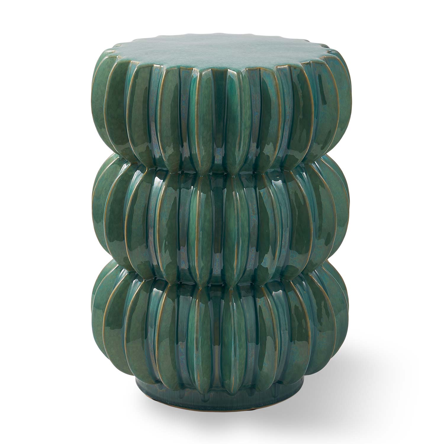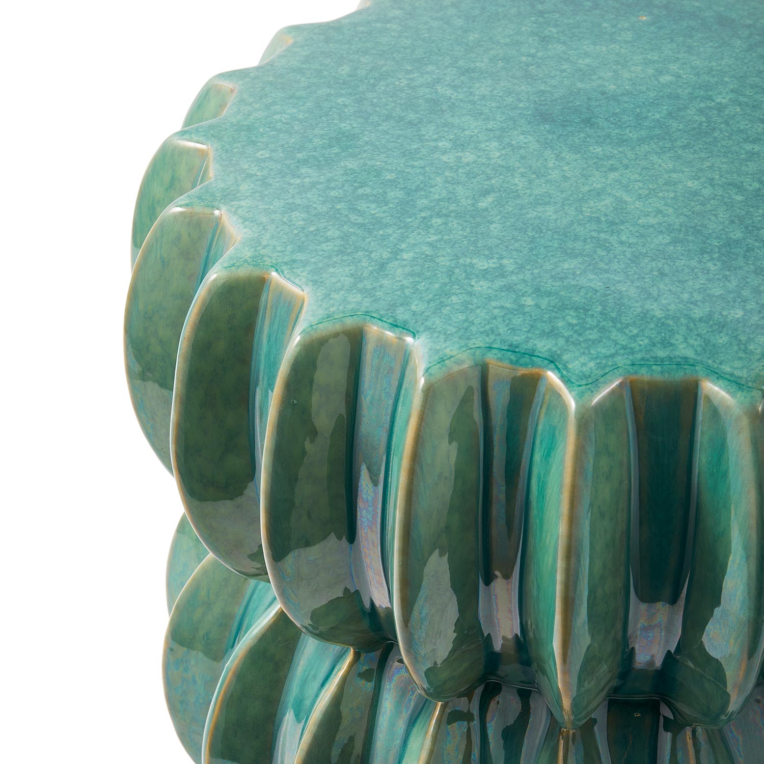 Je nach Lichteinfall und Perspektive schimmert die reaktive Glasur in verschiedenen Grüntönen. So wirkt jeder Pols Potten - Pumpkin Beistelltisch einzigartig – eine lebendige Oberfläche, die Bewegung und Tiefe vermittelt. Das Stück wird aus hochwertiger Keramik gefertigt und ist durch das spezielle Finish besonders ausdrucksstark.