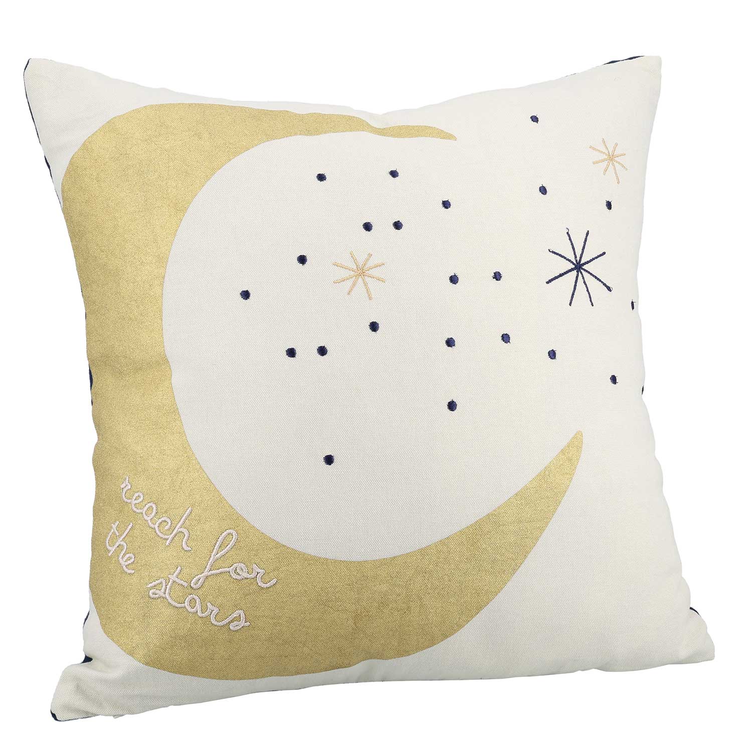 Mit dem Kissen „Nachthimmel“ von Räder Design zieht ein Hauch von Zauber ins Wohnzimmer ein. Ob mit dem Schriftzug „Sternstunden“ oder dem goldenen Mondmotiv samt „Reach for the stars“ – jedes Modell erzählt seine eigene Geschichte und bringt stimmungsvolle Akzente auf Sofa, Sessel oder Bett. Die detailreiche Stickerei und die harmonischen Farben verleihen dem Kissen einen ganz besonderen Charakter.