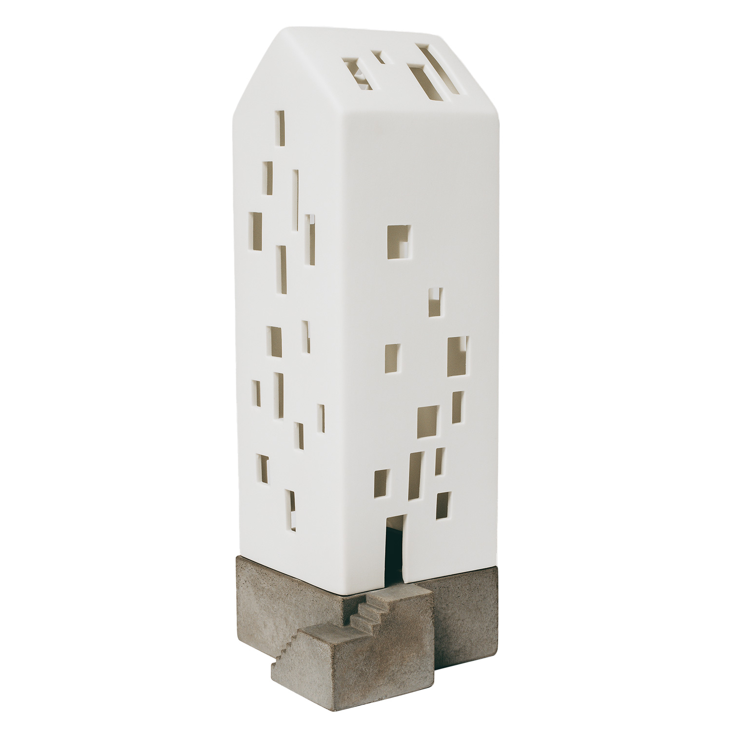 Das Lichthaus Apartmenthaus von Räder Design verbindet modernes Design mit gemütlichem Kerzenschein. Gefertigt aus unglasiertem Porzellan und ergänzt durch einen Sockel in Betonoptik, setzt es stilvolle Akzente in Ihrem Wohnraum.