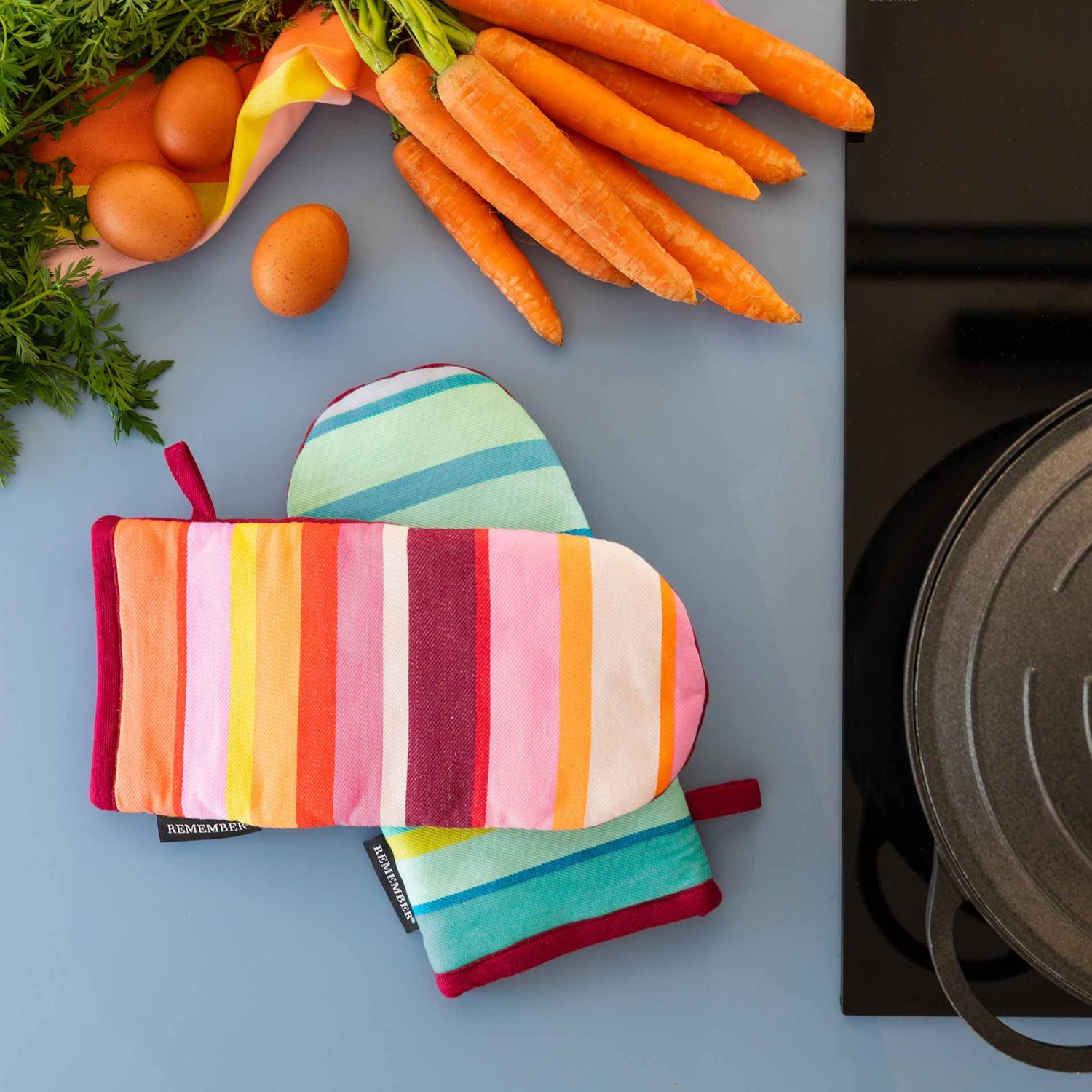 Für den besonderen Spaß beim Kochen sorgen ab sofort die bunten Ofenhandschuhe von REMEMBER. Erhältlich im farbenfrohen Zweierset bieten sie den gewünschten Schutz vor heißen Pfannen, Ofenformen oder Töpfen und sehen dazu noch super-lustig aus.