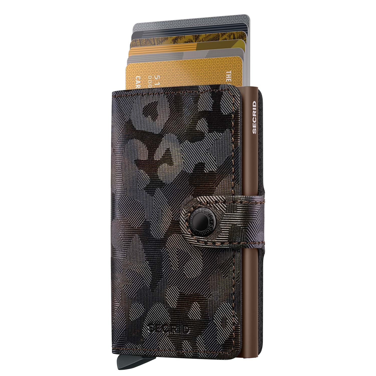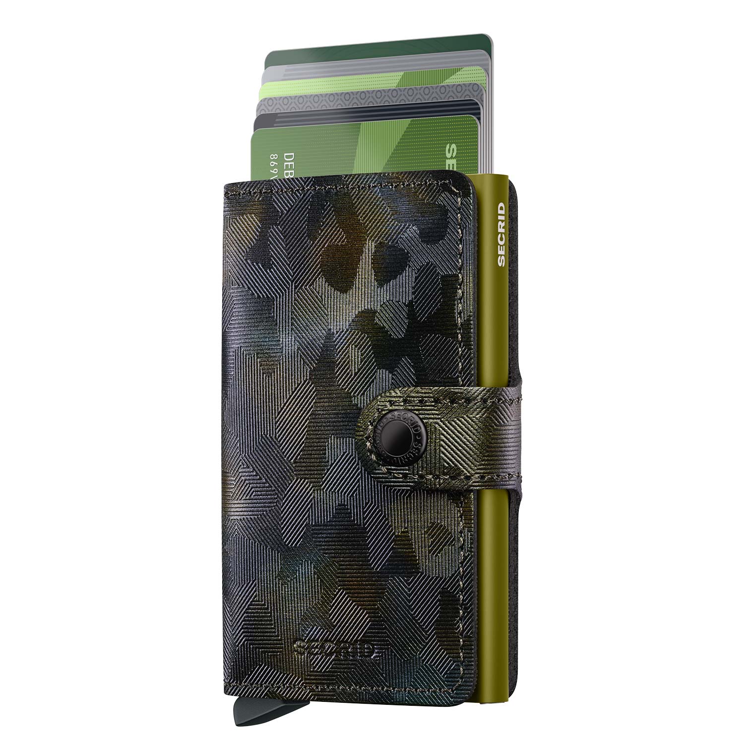 Die Secrid - Miniwallet Jungle besticht durch ihr einzigartiges Leder mit Dschungel-Prägung, das nicht nur optisch, sondern auch haptisch ein besonderes Erlebnis bietet. Dieses spezielle Leder verleiht der Geldbörse eine markante Textur und macht sie zu einem echten Hingucker. Der Camouflage-Druck ist mehrfarbig, aber dennoch dezent. Danke der Folienbeschichtung ist er extra widerstandsfähig. Der Verschlussknopf ist in der Gun Metal-Ausführung gefertigt.