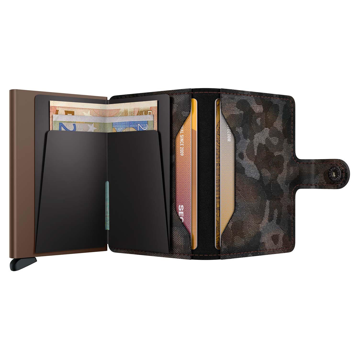 Die Secrid - Miniwallet Jungle ist in den natürlichen Farben Moss und Braun erhältlich, sodass Sie je nach Vorliebe und Stil wählen können.