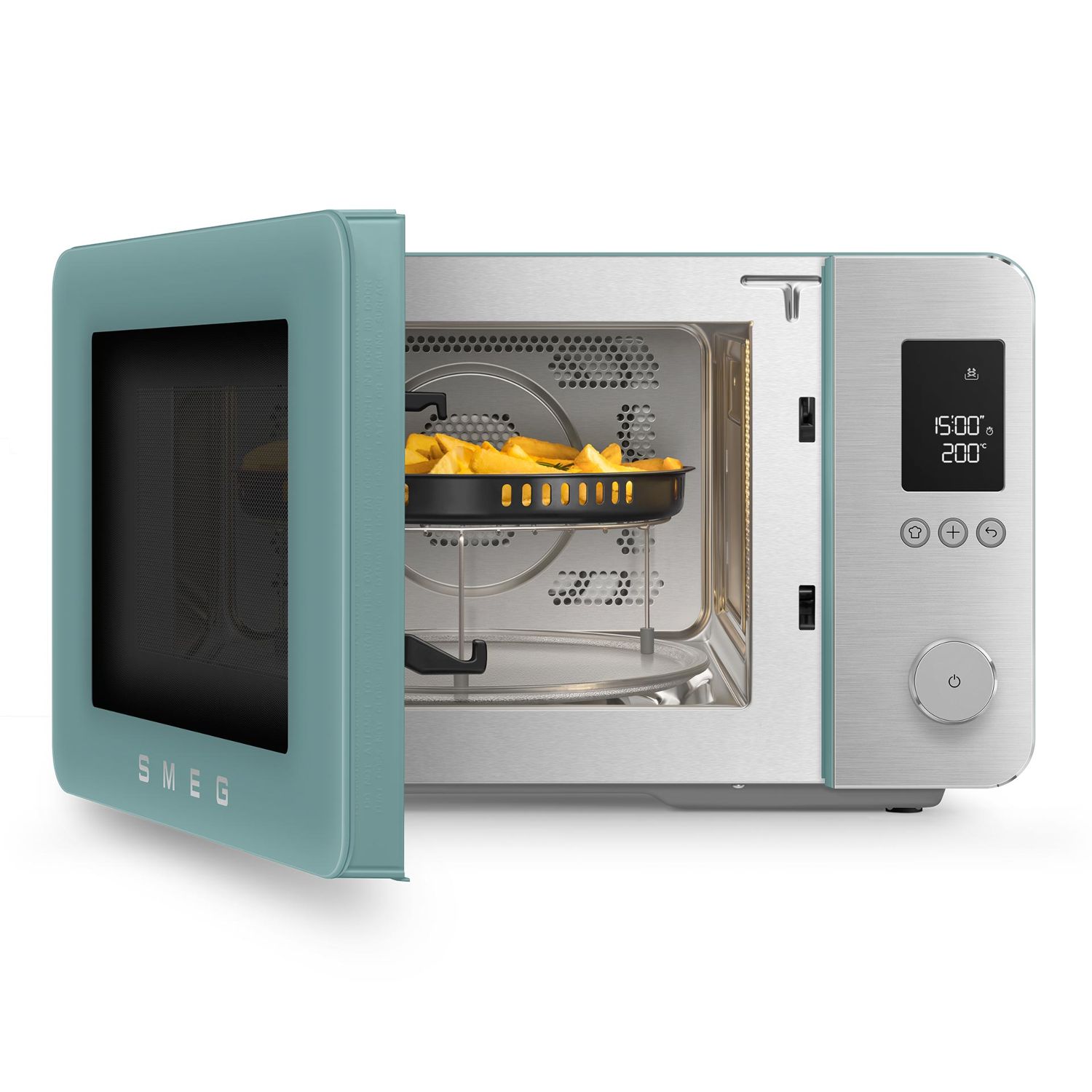 Die SMEG - Kombi-Mikrowelle mit Air Fry ermöglicht drei kombinierte Modi: Mikrowelle mit Grill, Mikrowelle mit Heißluft sowie Heißluft mit Grill. Dadurch können mehrere Technologien gleichzeitig genutzt werden, um unterschiedliche Garprozesse miteinander zu verbinden.