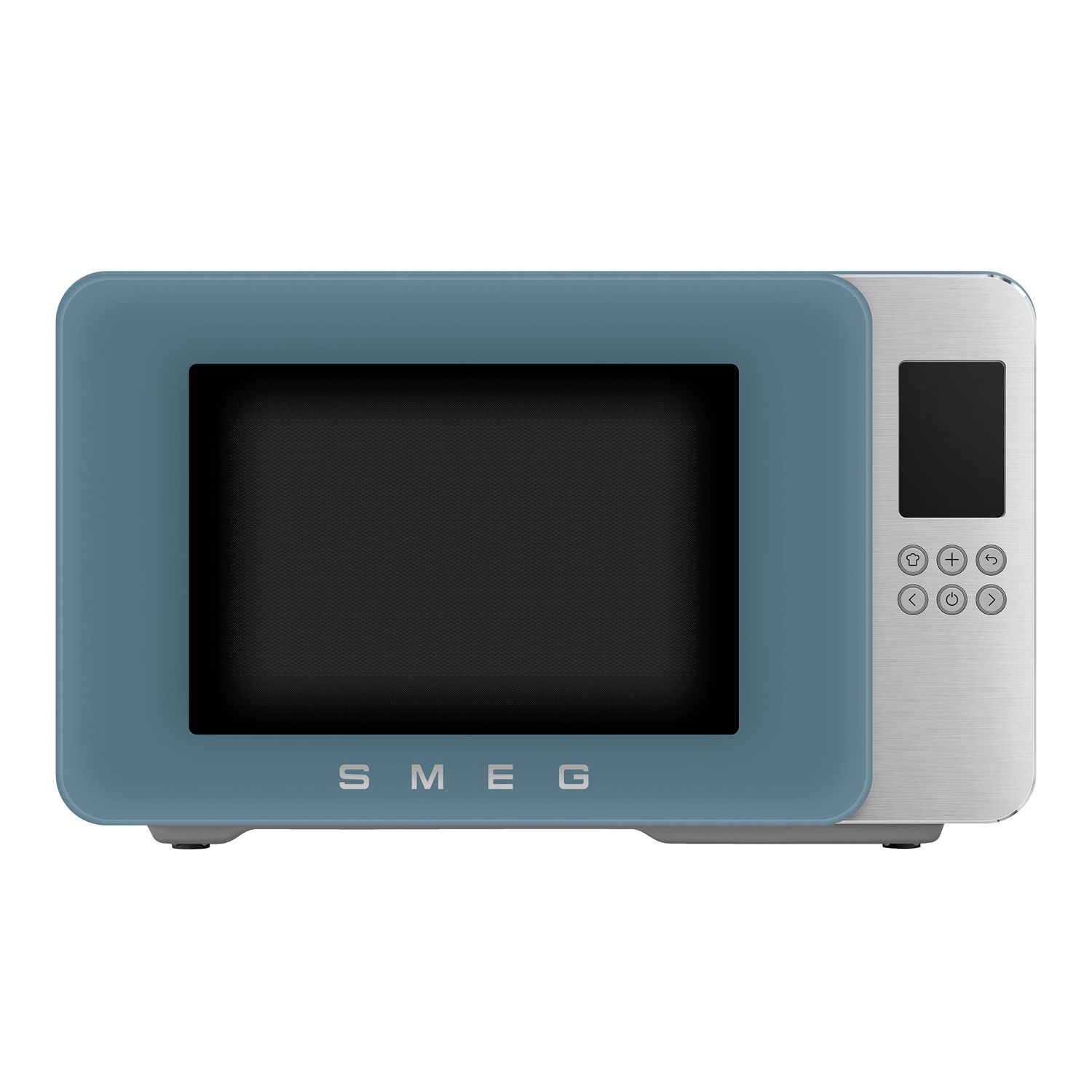 Die SMEG - Mikrowelle mit Grillfunktion ist mit einem Edelstahl-Garraum, einem Glas-Drehteller und einer LED-Innenbeleuchtung ausgestattet. Ein LCD-Farbdisplay sowie Bedientasten ermöglichen eine übersichtliche Steuerung der Funktionen.