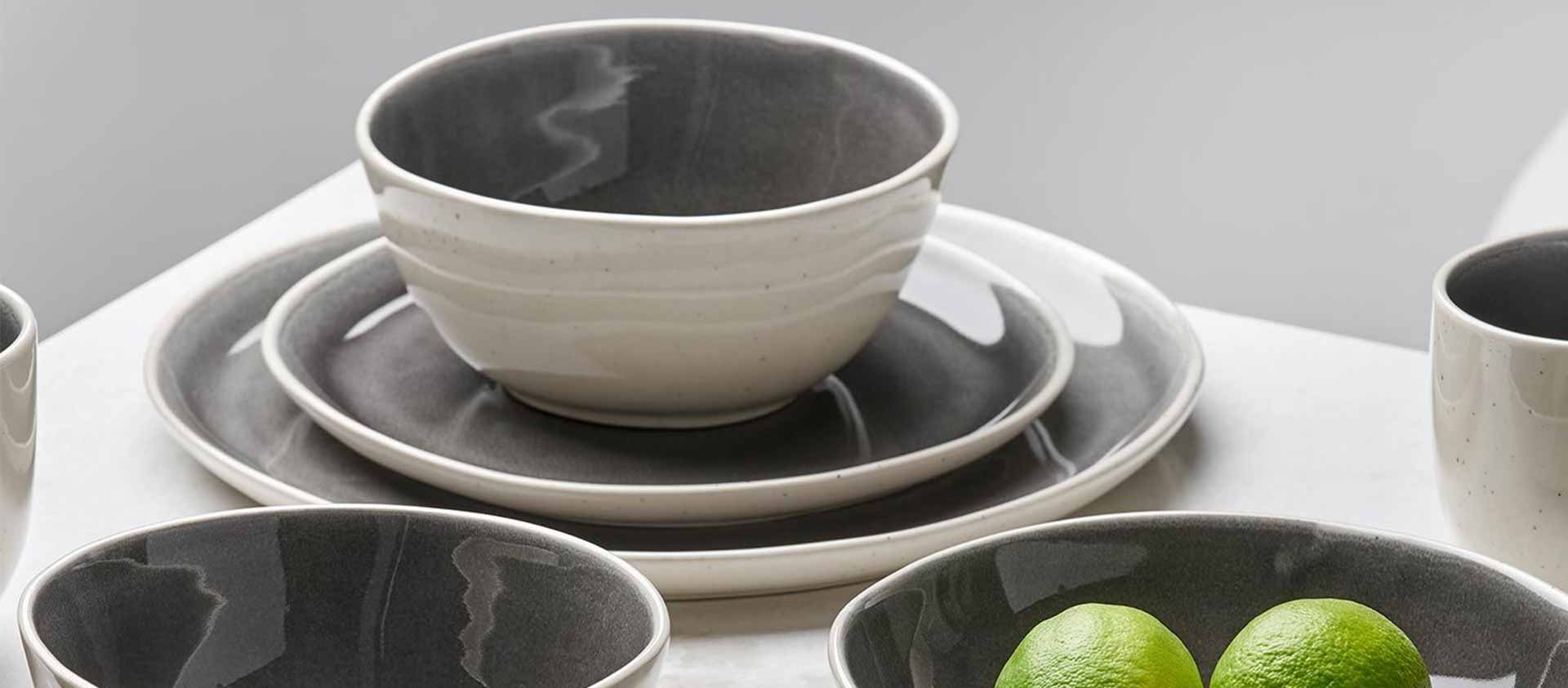 Die Jona-Kollektion umfasst Ess- und Dessertteller, Schalen, Becher, Tassen, Servierplatten und Bowls. Die Farbpalette reicht von warmen Erdtönen bis zu sanften Grau- und Grüntönen – ideal für ein harmonisches Tischbild.