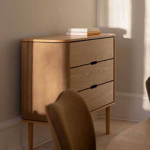 Die UMAGE Treasures Kommode vereint skandinavische Ästhetik mit Funktionalität. Gefertigt aus furniertem Eichenholz, bietet sie eine elegante Aufbewahrungslösung für Ihr Zuhause.