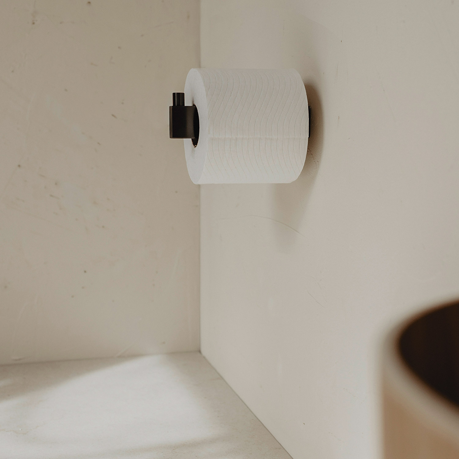 Mit seinen Maßen ist der Halter besonders platzsparend. Die verdeckte Wandmontage sorgt für eine schwebende Optik und ein aufgeräumtes Gesamtbild im Bad.