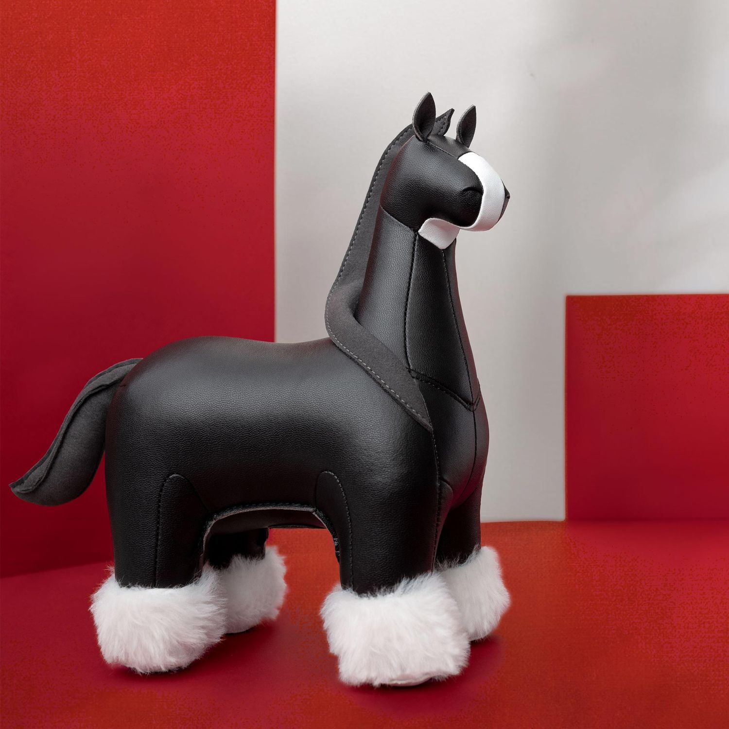 Die Züny - Buchstütze Pferd Shire ist die perfekte Kombination aus praktischem Nutzen und dekorativem Design. Mit ihrem eleganten Pferde-Look sorgt sie für Ordnung im Regal und setzt gleichzeitig stilvolle Akzente. Erhältlich in den Farben Tan und Schwarz, fügt sich die Buchstütze harmonisch in unterschiedliche Wohnstile ein. Gefertigt aus hochwertigem Kunstleder und sorgfältig von Hand gesetzten Nähten, überzeugt sie durch Stabilität und zeitlose Eleganz – ein Must-have für Bücherliebhaber und Designfans.